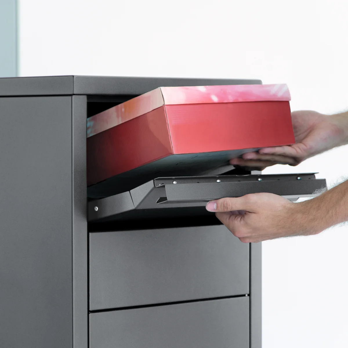 De Letterman Standing Ovation kan worden geplaatst waar het er goed uitziet en nodig is: De 124 cm hoge brieven- en pakketdoos is verkrijgbaar in verschillende kleuren.