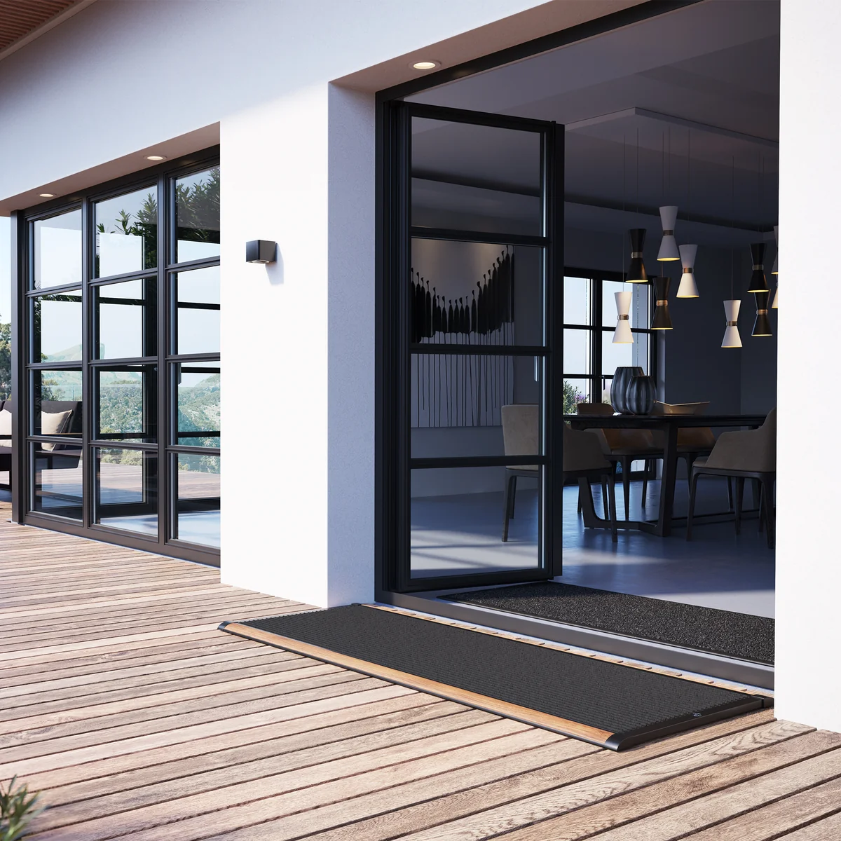 De Double Door Doormat Outdoor van het Deense label Rizz inspireert door zijn extreem hoge functionaliteit. De deurmat verwijdert zand, vuil en stof als geen andere vergelijkbare mat. Ongewenst materiaal dat aan de voetzolen kleeft, valt gewoon door de openingen van de afzonderlijke stroken. Het echte hart van de deurmat is echter de borstel van UV-bestendig nylondraad en roestvrij staal.