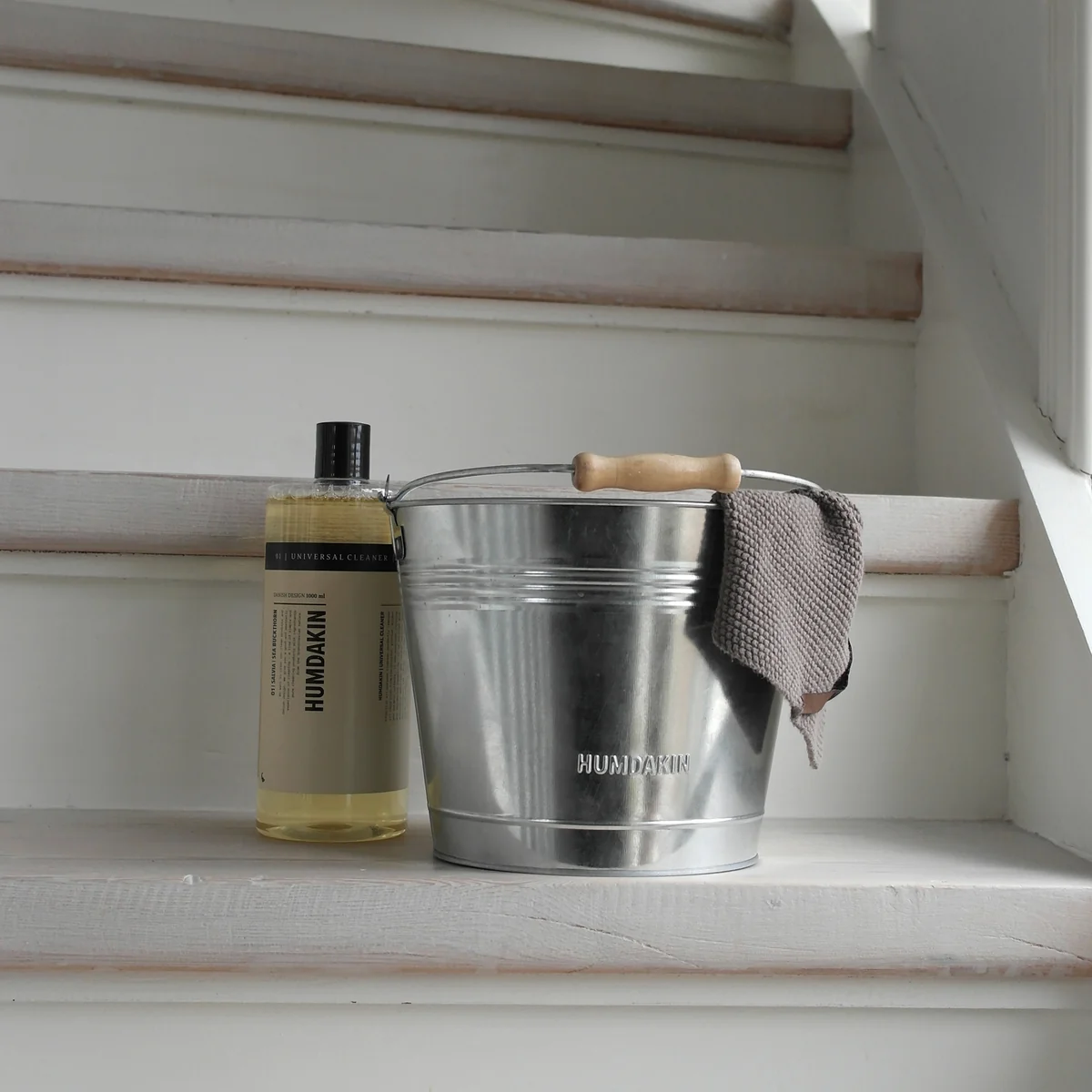 Met de emmer van Humdakin staat niets het schoonmaken in stijl in de weg! De ijzeren emmer heeft een houten handvat, waardoor hij gemakkelijk te vervoeren is. Met een inhoud van 5 liter kan hij op verschillende manieren worden gebruikt - voor het bewaren van schoonmaakproducten of als wateremmer in combinatie met schoonmaakproducten. Maar hij kan eventueel ook gebruikt worden om kinderspeelgoed in te verzamelen.