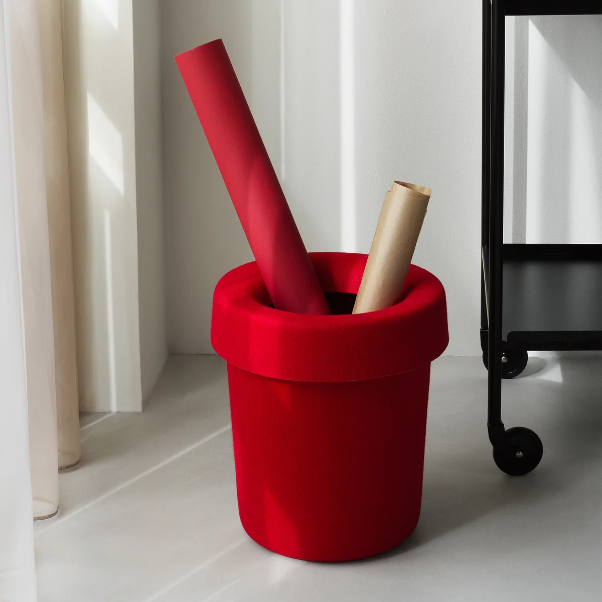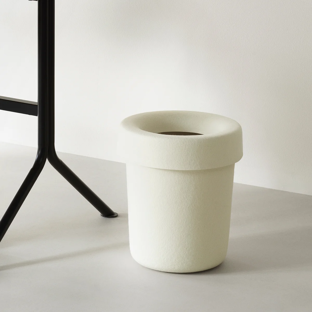 De Hide prullenbak van Normann Copenhagen , ontworpen door Simon Legald, herinterpreteert de klassieke prullenmand. Met zijn slanke silhouet en verfijnde ontwerp combineert hij functionaliteit met ingetogen elegantie. In het afneembare deksel kan een plastic zak worden geplaatst, die volledig verborgen blijft wanneer hij gesloten is - voor een opgeruimd, harmonieus totaalbeeld op de werkplek. De Office Bin is gemaakt van duurzaam PET-vilt van gerecycled materiaal en past naadloos in moderne kantoor- en thuisomgevingen.