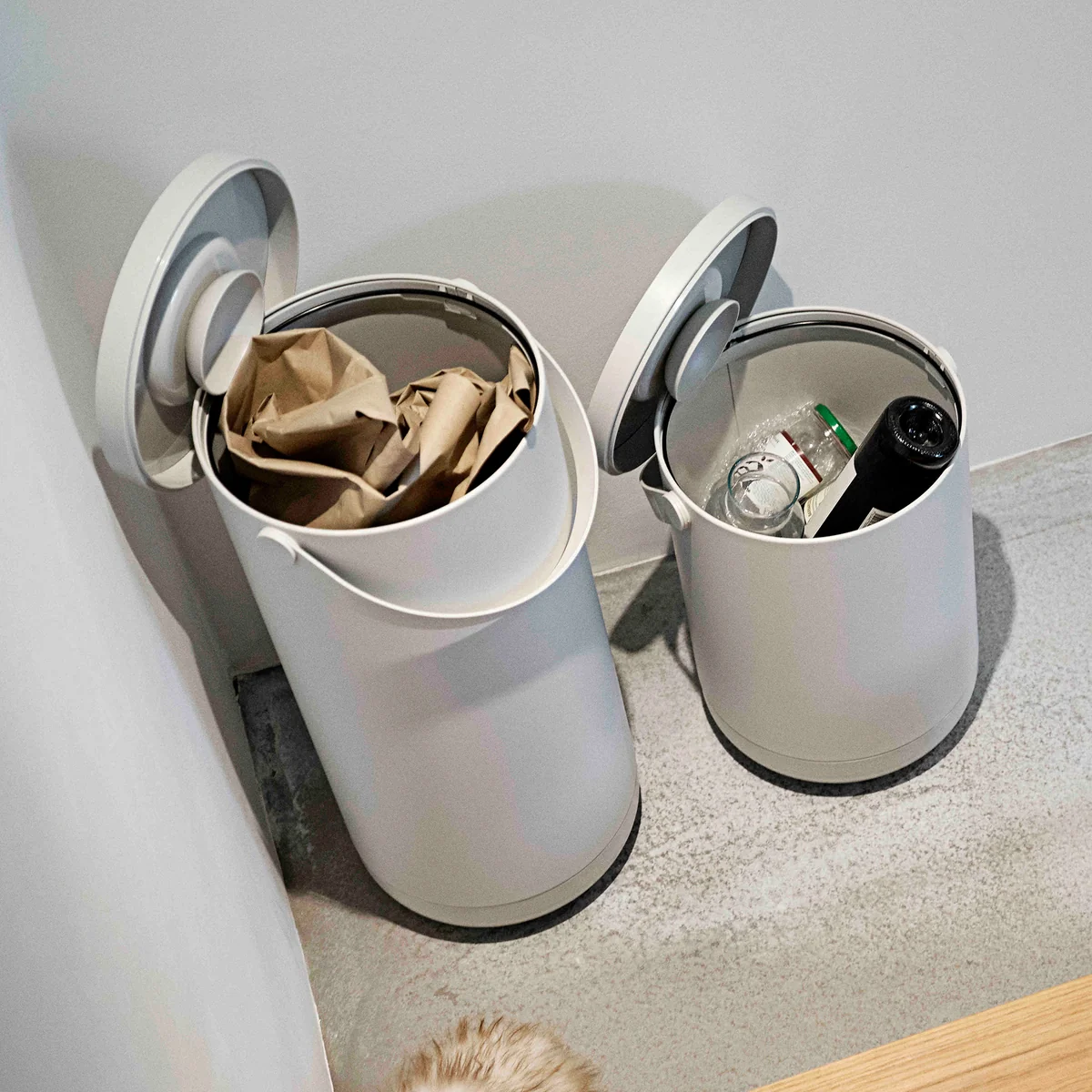 De Circular afvalbak van de fabrikant Zone Denmark is de perfecte, milieuvriendelijke manier om afval te sorteren. De correcte scheiding van restjes vermindert de koolstofuitstoot en draagt zo bij tot de bescherming van het milieu. De Circular De vuilnisbak voor organisch afval - de voorloper van de afvalbak - werd bijzonder goed onthaald. Daarom biedt Zone Denmark elegante vuilnisbakken van 15 tot 35 liter aan. Ze zijn zo ontworpen dat ze niet noodzakelijk onder de gootsteen verborgen hoeven te worden. Circular kan prachtig geplaatst worden in de keuken of op kantoor. De bakken zijn uiterst gebruiksvriendelijk: ze zijn gemakkelijk schoon te maken en het deksel kan gemakkelijk worden verwijderd. Ze hebben ook een handvat, waardoor ze gemakkelijk te vervoeren zijn. De dubbele hanger kan worden opgeklapt, zodat de afvalzak gemakkelijker kan worden verwisseld.