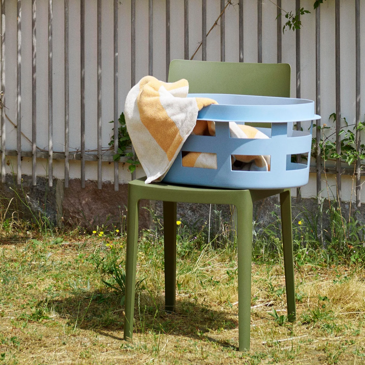 Als een echte allrounder biedt de mand niet alleen plaats aan HAY De mand biedt niet alleen plaats aan wasgoed, maar kan bijvoorbeeld ook gebruikt worden in de keuken, waar de kleine versie bijzonder geschikt is voor het bewaren van groenten of fruit. Hij kan ook worden gebruikt in de kinderkamer of studeerkamer om speelgoed of kantoorbenodigdheden in op te bergen. De mand is verkrijgbaar in twee maten, waarbij de kleine versie handig op het grote model geplaatst kan worden en zo als deksel fungeert.