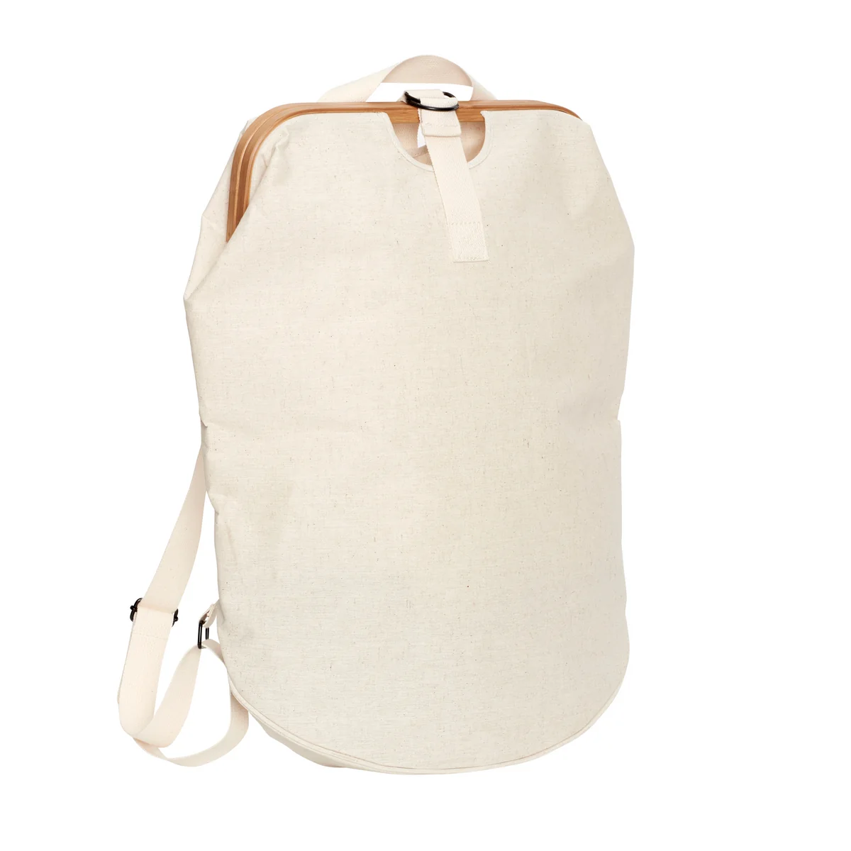 De waszak van Hübsch Interior is de perfecte opbergmogelijkheid voor allerlei soorten wasgoed. Op de bodem geplaatst, biedt het ruimte voor kleding en meer. Met zijn gedempte natuurlijke kleuren en no-frills buitenkant is de waszak ideaal voor de slaapkamer, de badkamer of de gang. Het hoogtepunt ligt echter in de twee draagriemen: Hiermee kan de waszak als een rugzak worden aangetrokken en getransporteerd, of op elkaar worden gestapeld voor een nette opslag. Dankzij de stabiele sluiting en het frame van bamboehout blijft de waszak altijd gesloten.