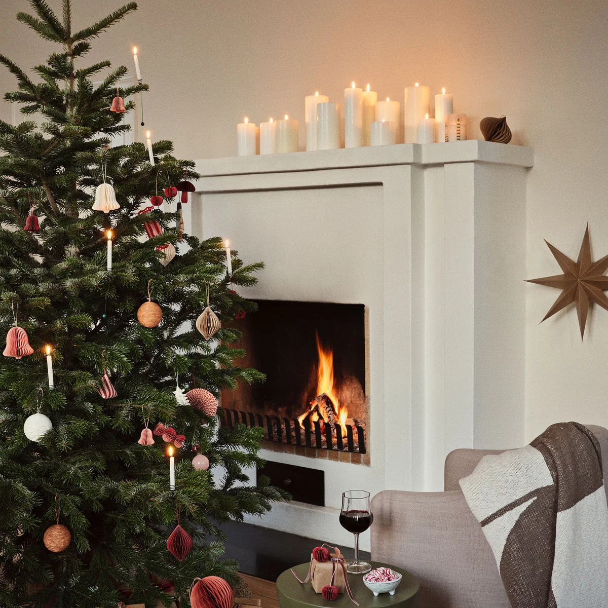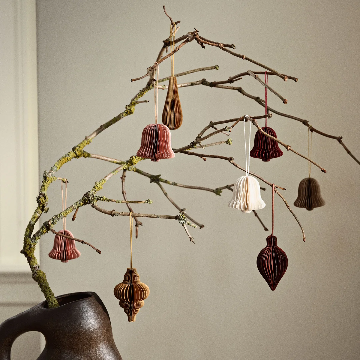 Broste Copenhagen De Chime Bell decoratieve hangers van combineren milieuvriendelijkheid met feestelijke charme. Deze klokvormige decoraties zijn gemaakt van honingraatstructuren van FSC-gecertificeerd papier en zijn verkrijgbaar in een groot aantal kleuren. Ze zijn ideaal voor elke decoratiestijl en voegen een weloverwogen elegantie toe aan de feestdagen.