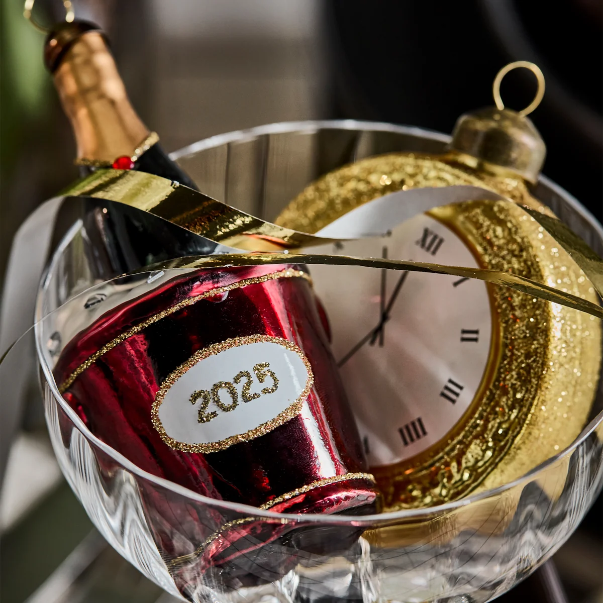 De New Year ornamenten van House Doctor voegen elegante accenten toe aan je decoraties tijdens de jaarwisseling. Met hun eenvoudige, moderne ontwerp brengen ze een feestelijke glamour in woonruimtes en kunnen ze op verschillende manieren worden gebruikt op takken, in ramen of als tafeldecoratie.
