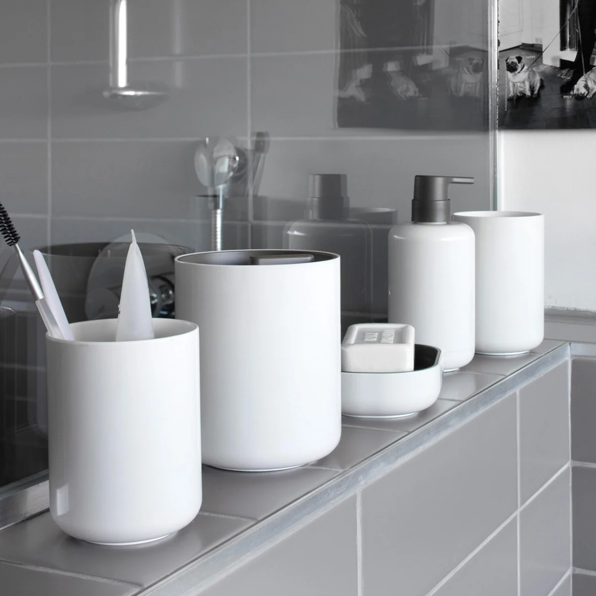 De Lunar dekselbox van Authentics combineert dikwandige, hoogglanzende ABS-kunststof met een gekleurde, matte inleg. De sobere, eenvoudige vorm benadrukt de functionaliteit: of het nu gaat om wattenschijfjes, wattenstaafjes, haaraccessoires of hygiëneproducten, de dekseldoos bergt alle items discreet en op een moderne manier op. Het blik is verkrijgbaar in een reeks kleuren en past in diverse badkamerstijlen. Het werkt ook uitstekend op de cosmetische tafel.