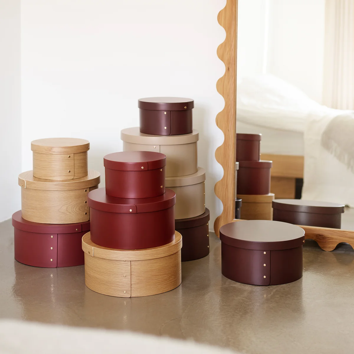 De Drejø opbergdozen zijn geïnspireerd op de klassieke "Shaker box", oorspronkelijk ontworpen door de Amerikaanse Shaker gemeenschap. Deze gemeenschap legde de nadruk op functioneel, eenvoudig ontwerp zonder overbodige versieringen, wat veel belangrijke ontwerpers beïnvloedde, zoals Børge Mogensen. De Drejø opbergdozen bieden royale opbergruimte voor een grote verscheidenheid aan voorwerpen zoals handwerk, speelgoed, sokken of persoonlijke spullen. Met hun elegante, ronde vorm zijn ze niet alleen praktisch, maar ook een stijlvol designelement. De dozen zijn verkrijgbaar in verschillende kleuren en worden bijeengehouden door eenvoudige messing klinknagels. Ze kunnen op verschillende manieren worden gebruikt - op een plank, op de vloer, gestapeld of als klein bijzettafeltje.