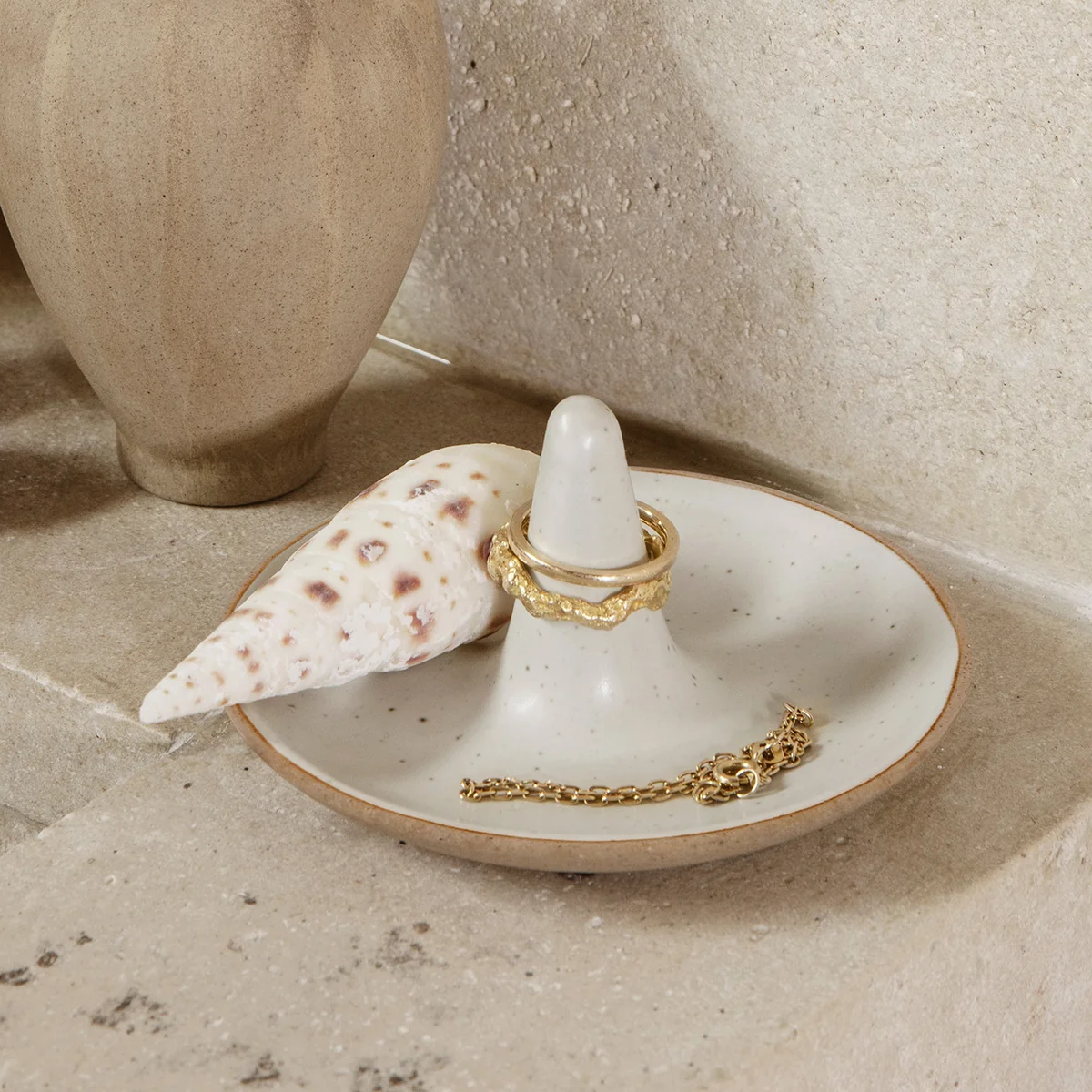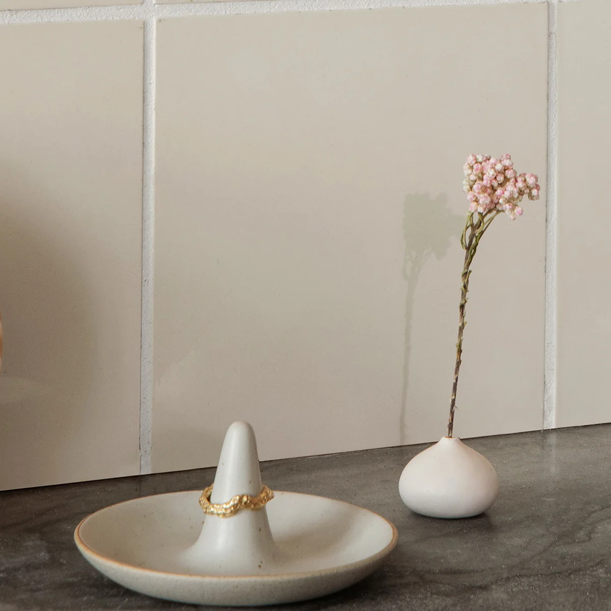 Orde is het halve werk. Dat geldt ook voor de Ring jewellery storage van het Deense bedrijf Ferm Living, waarmee het veilig en ongecompliceerd opbergen van ringen, kettingen en armbanden een fluitje van een cent wordt. De ring is kegelvormig en is gemaakt van onafgewerkt porselein bedekt met een mat, bijna melkachtig glazuur. De binnenkant is geglazuurd, terwijl de buitenkant van de kom ongeglazuurd is.
