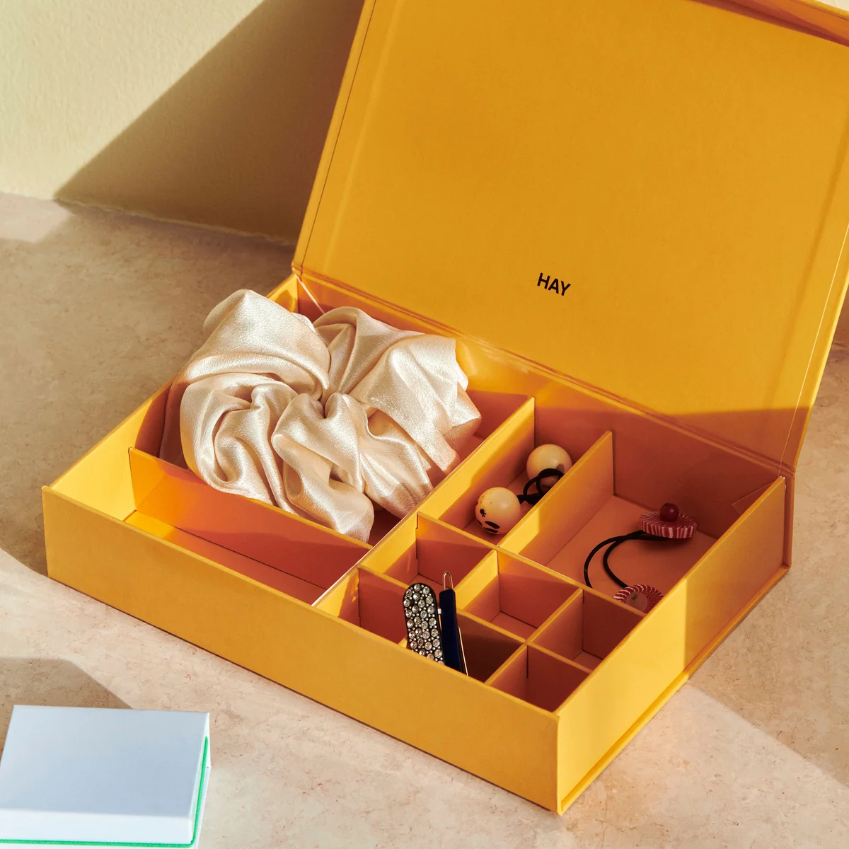 De Colour sieradendoos combineert decoratieve esthetiek met praktische functionaliteit. Hij is gemaakt van extra dik, FSC®-gecertificeerd karton met een glanzende afwerking en biedt een duurzame en elegante oplossing voor het opbergen van sieraden en andere kleine voorwerpen.