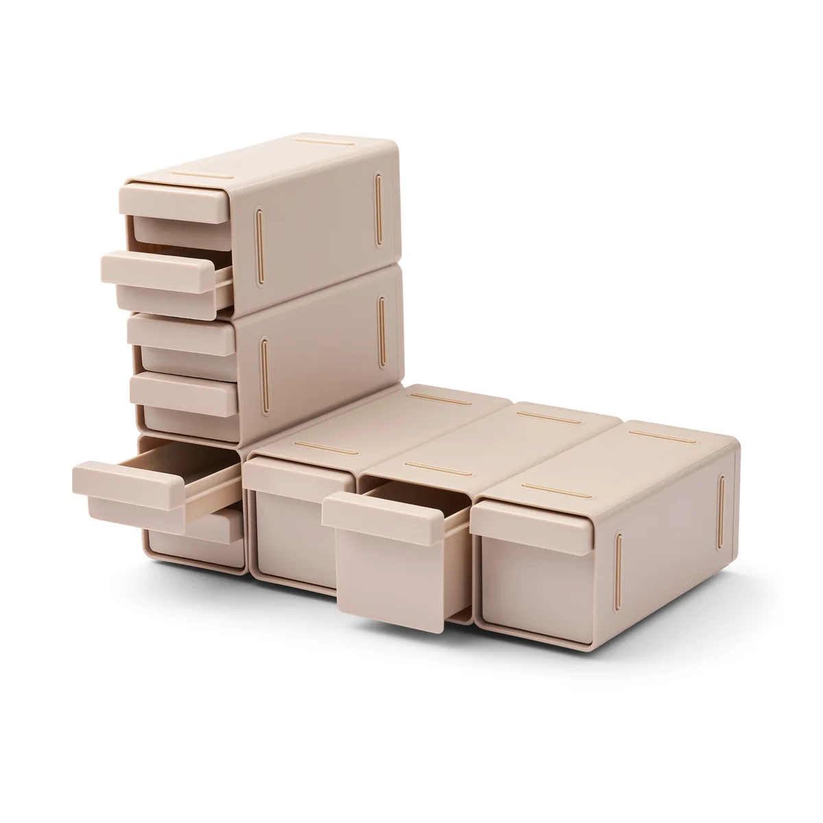De KYLIAN opbergboxen van LIEWOOD zijn een flexibele en duurzame oplossing voor meer organisatie in de kinderkamer en daarbuiten. Het modulaire systeem kan worden gestapeld, uitgebreid of aan de muur worden bevestigd, waardoor het kan meegroeien met de behoeften van je kind. Dankzij het veilige klikmechanisme blijven alle kleine spullen op hun plaats - van knutselmateriaal tot schoolspullen en kleine schatten. De dozen zijn gemaakt van ABS en maken indruk met hun duurzaamheid, functionaliteit en tijdloze ontwerp.