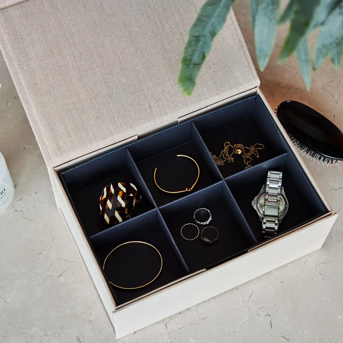 De OYOY Hako sieradenopberger combineert op elegante wijze esthetiek en functionaliteit. Deze stijlvolle opbergoplossing is zorgvuldig ontworpen om sieraden veilig en georganiseerd op te bergen en tegelijkertijd als decoratief element in de kamer te dienen.