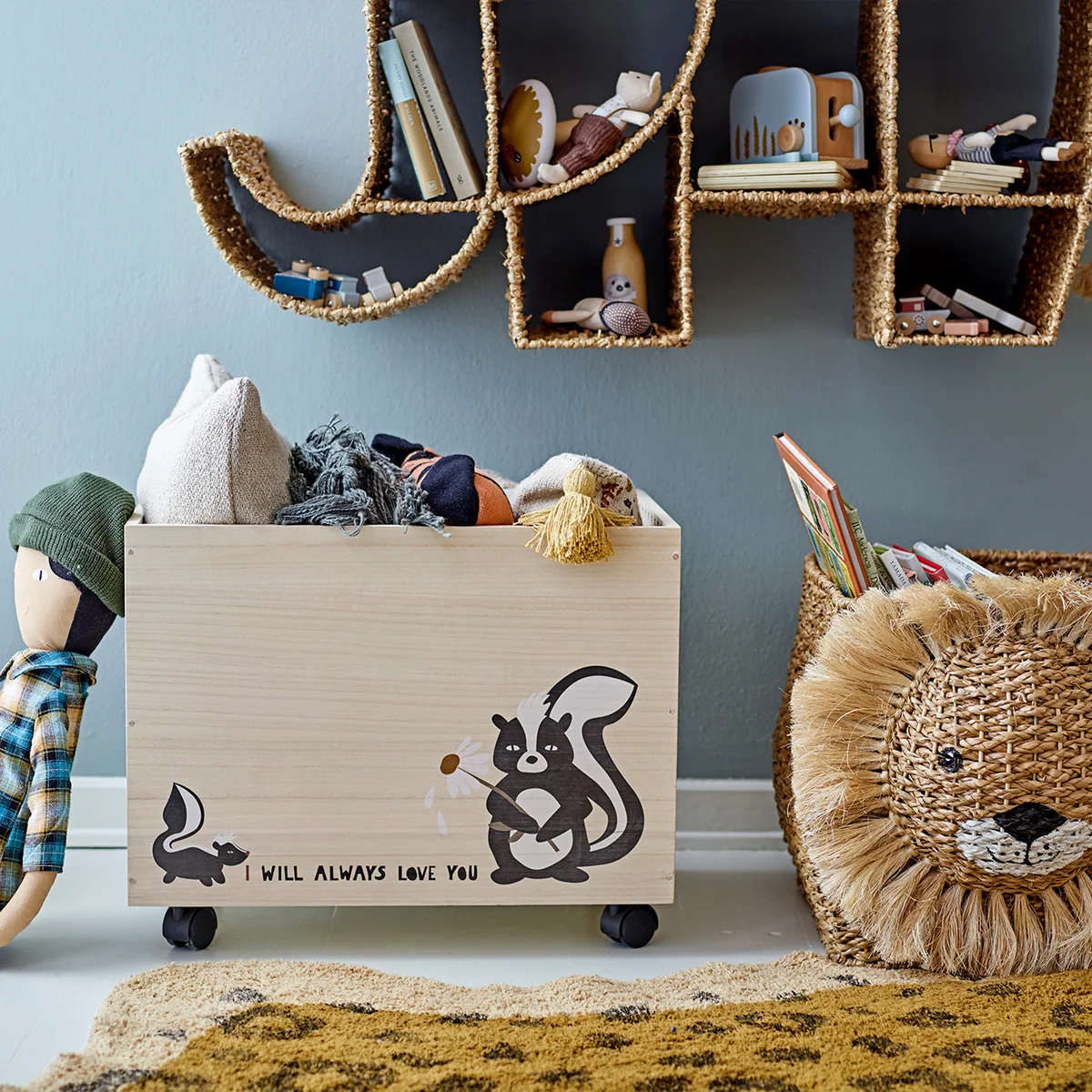 Als praktisch accessoire voor de kinderkamer presenteert de opbergmand Harrison van Bloomingville zich met een schattige leeuwenkop. Speelgoed, kleren, boeken en allerlei andere kleine dingen kunnen worden opgeborgen in de mand van Bankuangras. Alle belangrijke spullen kunnen netjes opgeborgen en beschermd worden door de leeuw.