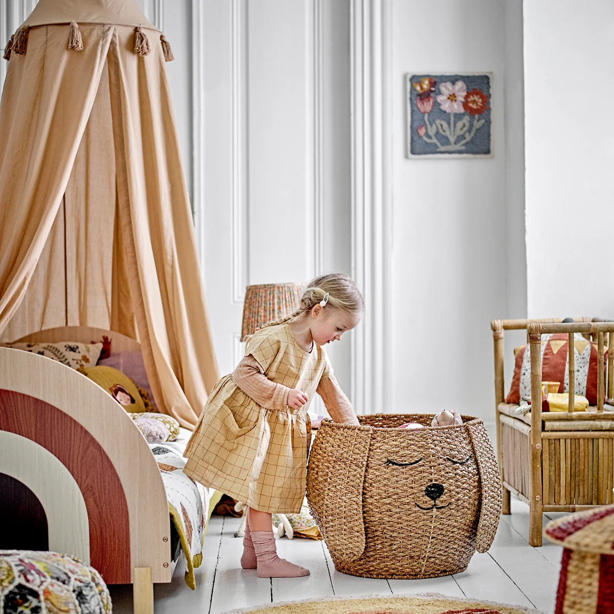 De Milus mand uit de Mini Collectie van Bloomingville is een ongelooflijk leuke opbergmogelijkheid. De manden, verkrijgbaar in een set van 2, zijn ideaal voor het opbergen van kinderspeelgoed en kleine kussens en dekens. De manden zijn versierd met een schattig honden- en kattengezicht, terwijl de oren bij de hond hangen en bij de kat rechtop staan. Ze zijn gemaakt van Bankuangras, rotan en ijzer.