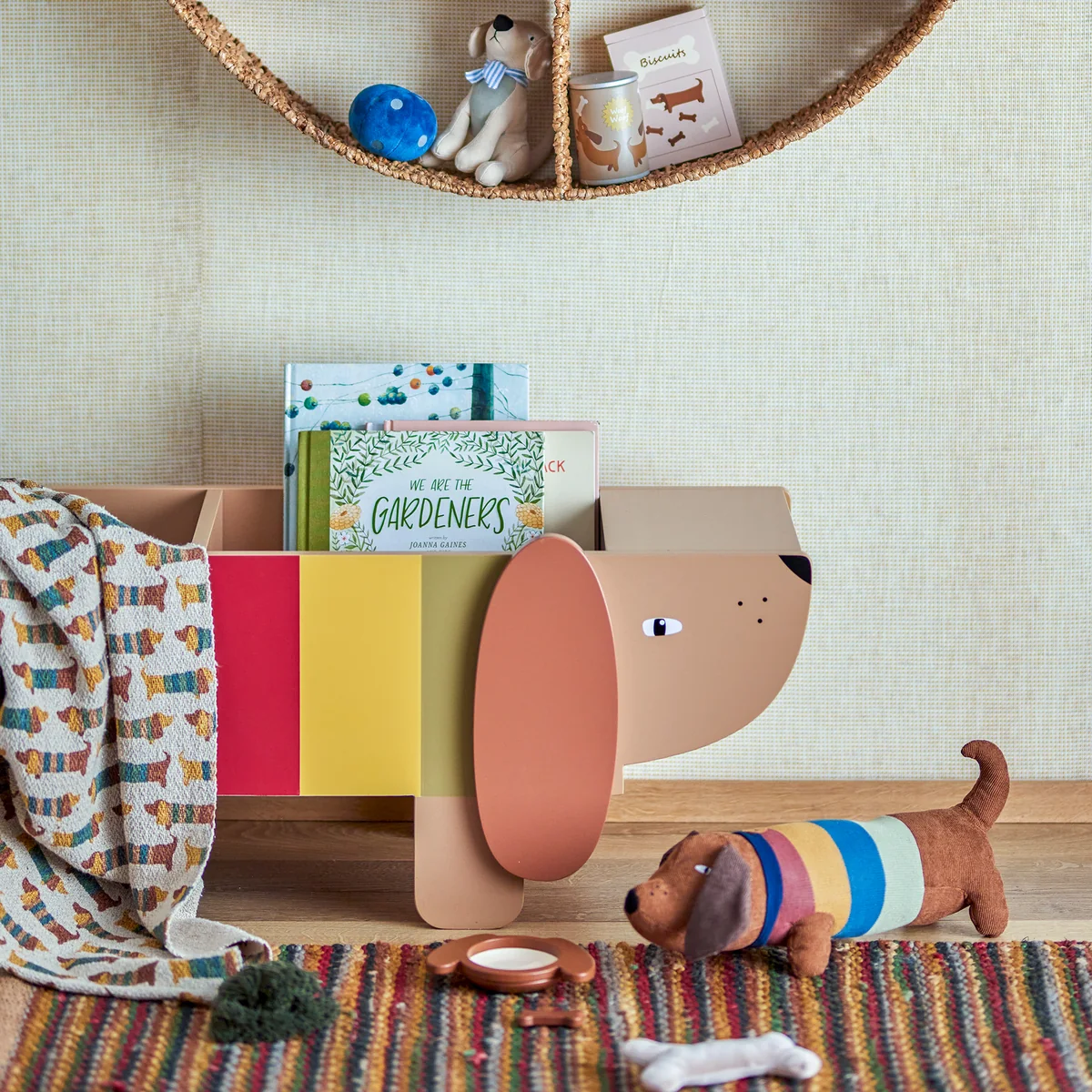 De Charlie boekenstandaard van Bloomingville Mini is niet alleen een praktisch meubelstuk, maar ook een schattig designelement dat de kinderkamer op een charmante manier opfleurt. Met zijn schattige hondenmotief en aantrekkelijke kleuren wordt het al snel een blikvanger en wekt het de nieuwsgierigheid van de kleintjes. De twee ruime vakken bieden voldoende opbergruimte voor boeken, speelgoed en zelfs knuffels. Deze boekenstandaard nodigt kinderen uit om te ontdekken, organiseren en spelen en bevordert de orde in de kinderkamer en stimuleert hun creativiteit en plezier. De Charlie boekenstandaard is daarom de ideale combinatie van functionaliteit en stijl om elke kinderkamer te verrijken.