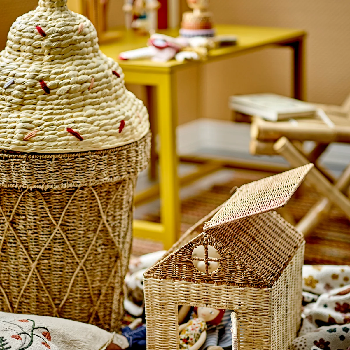 De Cillie mand met deksel van Bloomingville Mini is niet alleen een functioneel opbergelement, maar ook een prachtig designstuk dat de kinderkamer omtovert tot een zoet wafelijsavontuur. Met zijn speelse vorm en kleurrijke hagelslag bovenop stimuleert deze mand de verbeelding van kleintjes. Hij biedt royale opbergruimte voor speelgoed, boeken en andere schatten en voegt tegelijkertijd een speels en decoratief tintje toe aan de kamer. Het afneembare deksel maakt het gemakkelijk om bij de inhoud te komen en kleine handjes kunnen er gemakkelijk bij om hun favoriete spullen op te ruimen. De Cillie mand is daarom een perfecte combinatie van plezier en functionaliteit in de kinderkamer.
