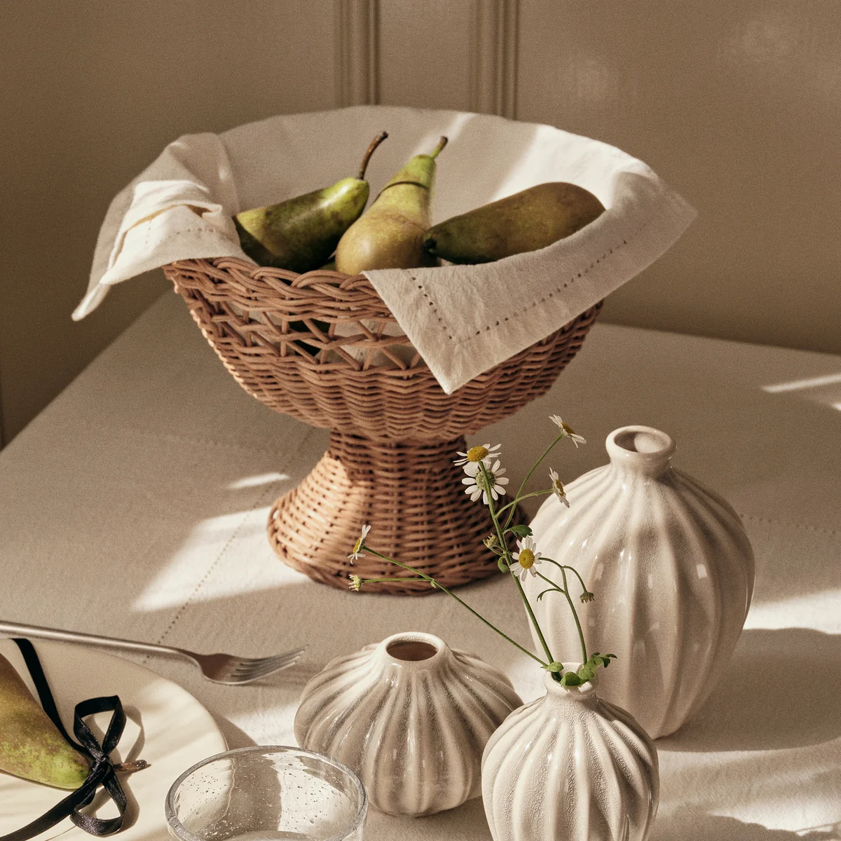 De Emmy rotan mand van Broste Copenhagen combineert functionele opslag met natuurlijk design. De mand is geweven van robuust rotan en maakt indruk met zijn warme uitstraling en veelzijdigheid. Voor dekens, speelgoed, wasgoed of als decoratief element in de woonkamer - de Emmy mand brengt structuur in het dagelijks leven en voegt tegelijkertijd een gezellig accent toe. Het subtiele kleurenschema en het luchtige geweven patroon onderstrepen de Scandinavische designhandtekening.