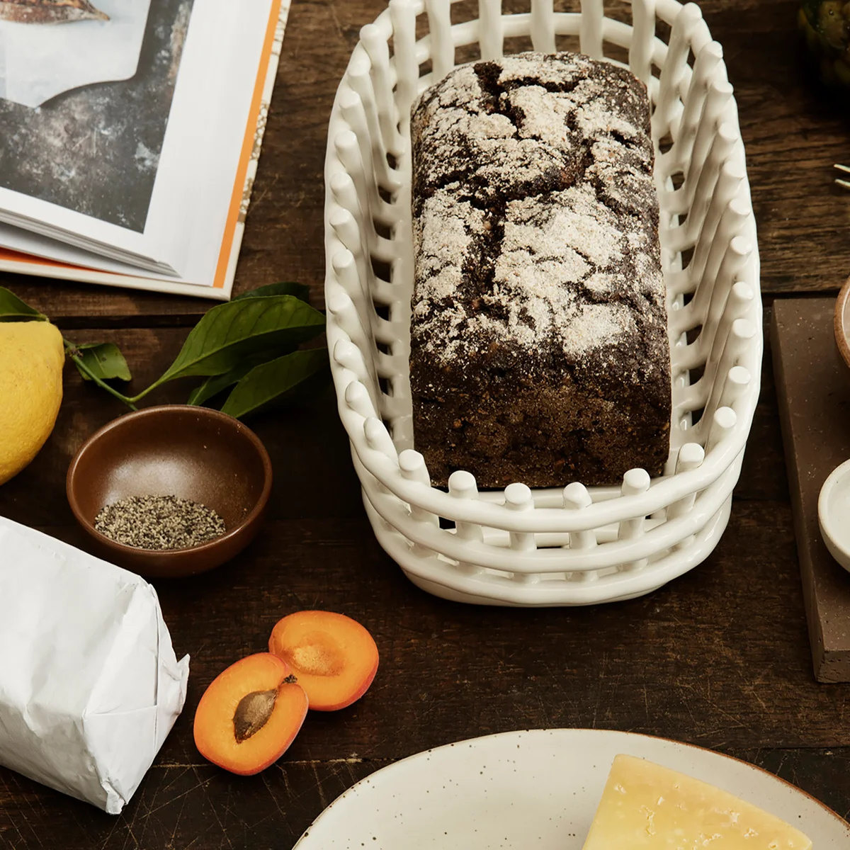 De ovale keramieken mand van Ferm Living wordt gekenmerkt door het glanzende, geglazuurde keramiek. De handgemaakte manden roepen het vertrouwde gevoel op van gevlochten containers en geven een nieuwe draai aan het traditionele mandenvlechten.