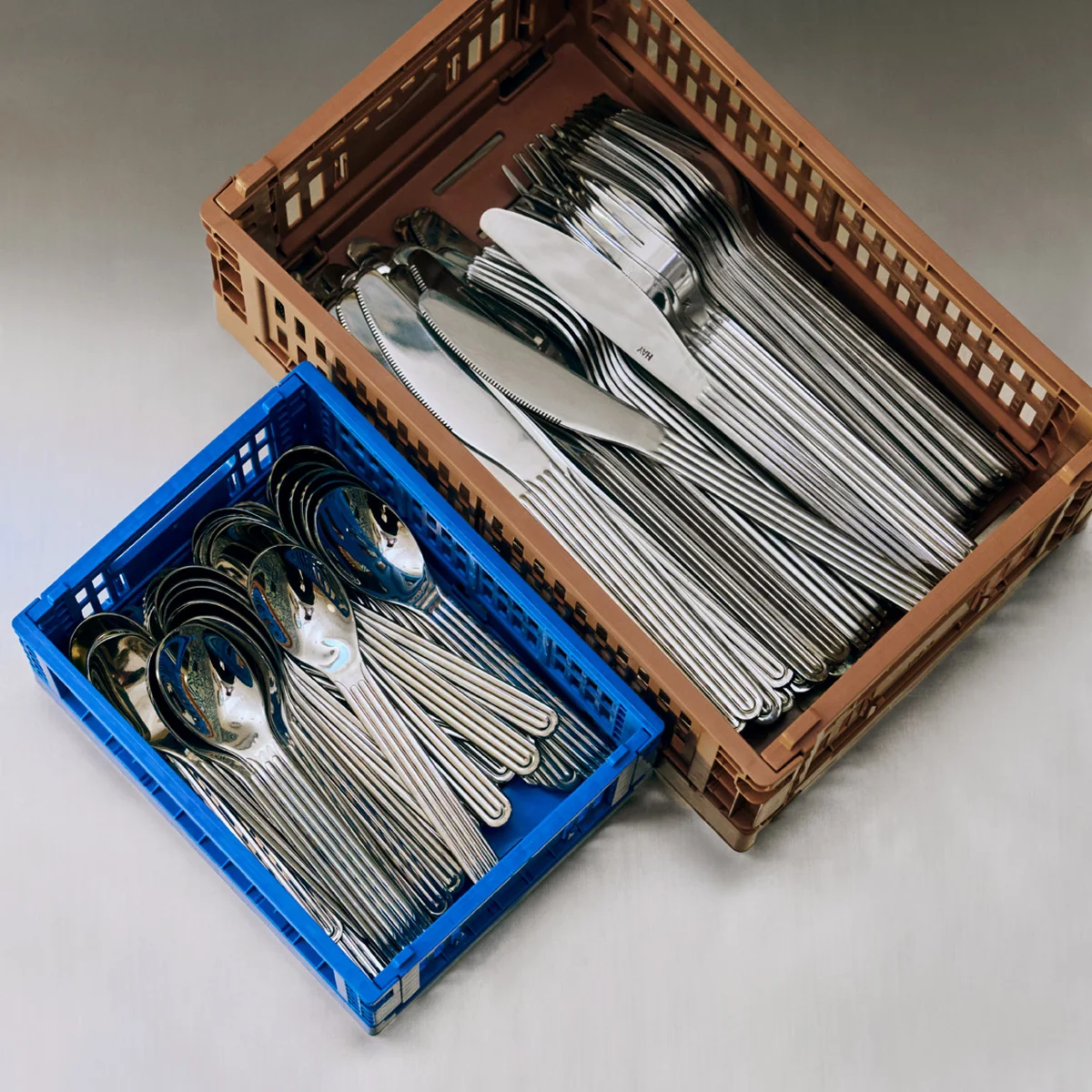 De Colour Crate S manden set van HAY combineert modern design met functionele duurzaamheid. De kleine opbergmanden zijn gemaakt van 100% gerecycled polypropyleen en maken indruk met hun geventileerde, stapelbare ontwerp, waardoor ze ideaal zijn voor de keuken, badkamer, kantoor of kinderkamer. Of het nu voor cosmetica, kruiden of kleine alledaagse voorwerpen is - de mandjes brengen stijlvolle organisatie in elk huis.