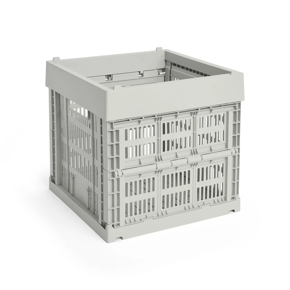 De serie HAY Colour Crate biedt functionele opbergoplossingen met een iconisch geperforeerd ontwerp. De kratten zijn gemaakt van 100% gerecycled plastic (post-consumer afval) en zijn verkrijgbaar in verschillende maten en kleuren - van kubusvormig tot rechthoekig. Dankzij hun slimme stapelbaarheid, optionele deksels en wielen en de optie om ze plat te vouwen als ze niet worden gebruikt, kunnen de kratten flexibel worden gebruikt - voor opslag, presentatie of zelfs als onderdeel van modulaire meubelideeën.