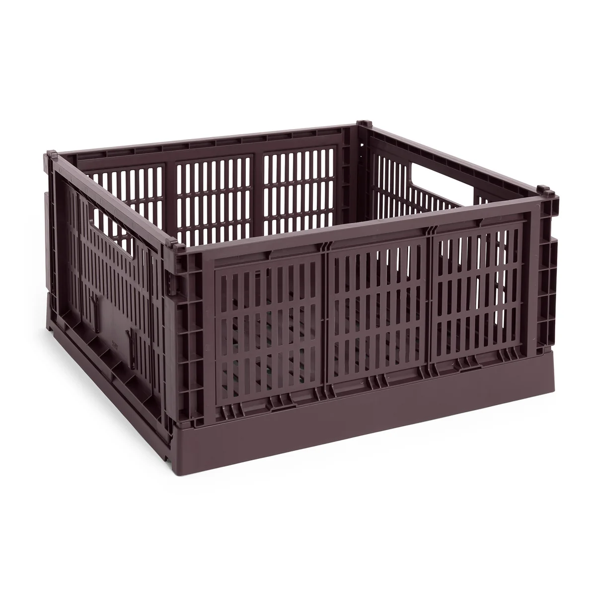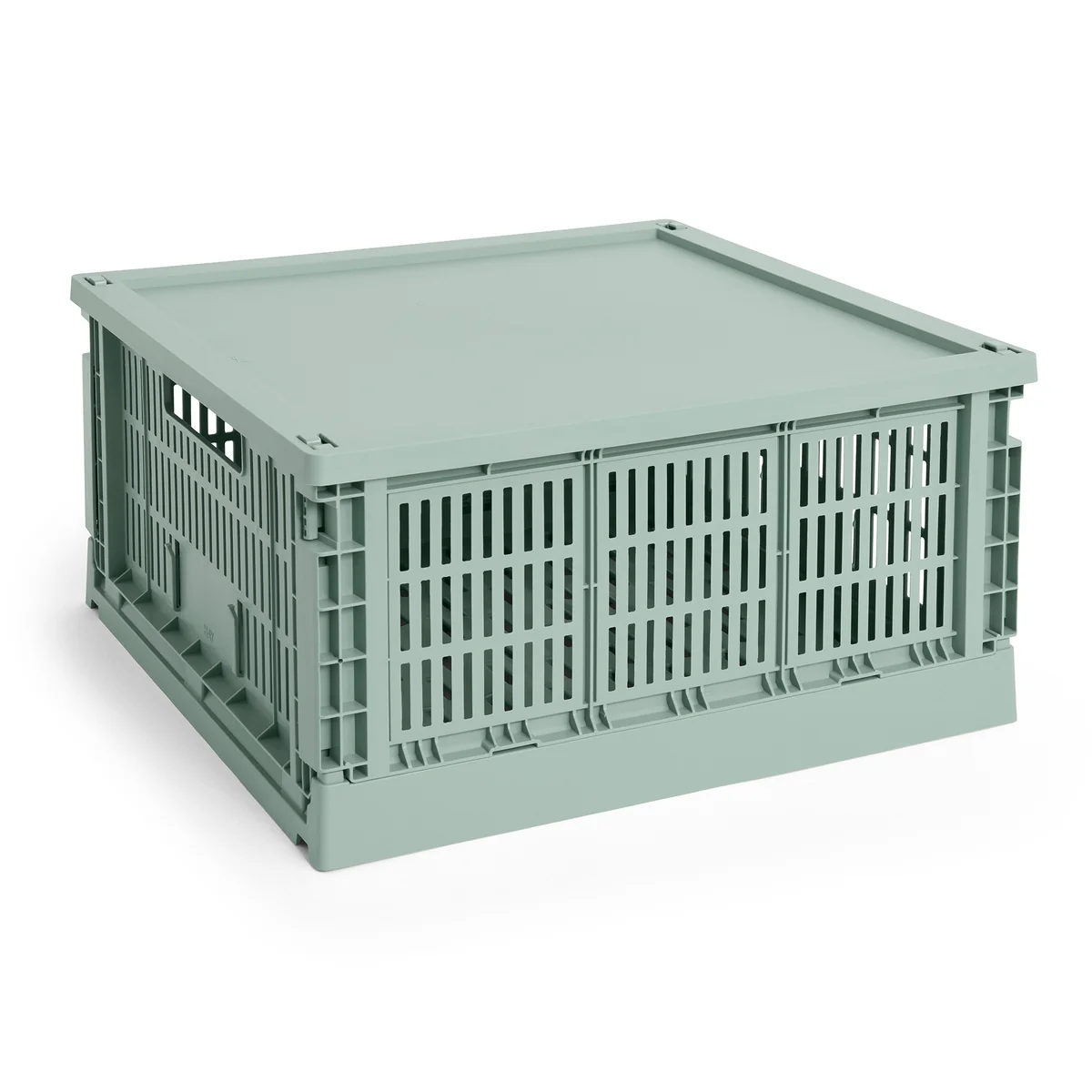 De serie HAY Colour Crate biedt functionele opbergoplossingen met een iconisch geperforeerd ontwerp. De kratten zijn gemaakt van 100% gerecycled plastic (post-consumer afval) en zijn verkrijgbaar in verschillende maten en kleuren - van kubusvormig tot rechthoekig. Dankzij hun slimme stapelbaarheid, optionele deksels en wielen en de optie om ze plat te vouwen als ze niet worden gebruikt, kunnen de kratten flexibel worden gebruikt - voor opslag, presentatie of zelfs als onderdeel van modulaire meubelideeën.