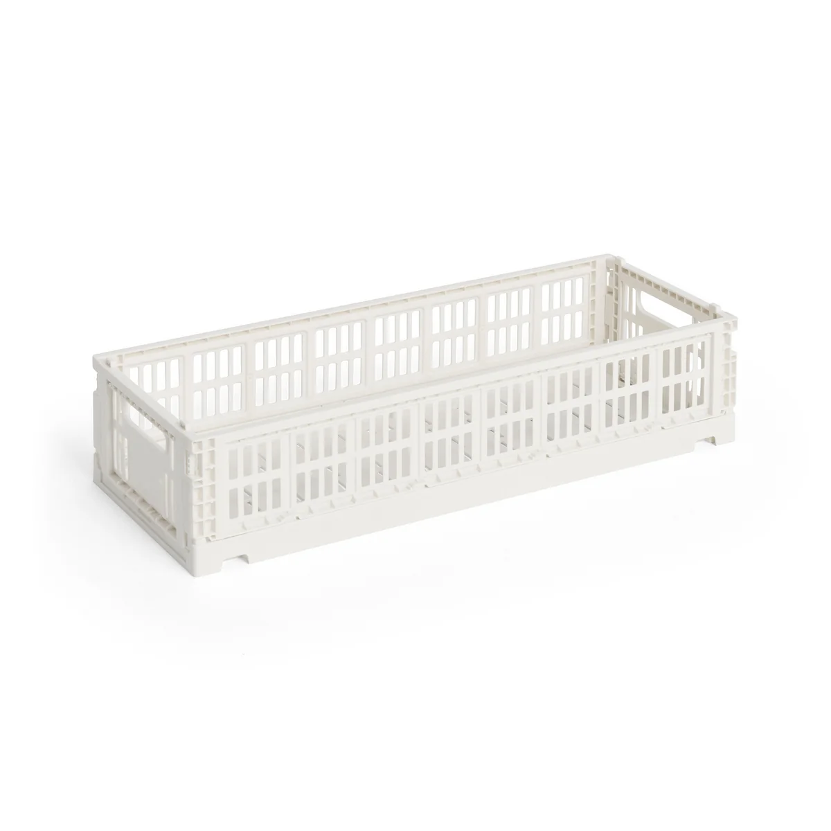 De HAY Colour Crate Mini is de kleinste versie van de iconische opbergserie en maakt indruk met zijn geperforeerde ontwerp en functionele veelzijdigheid. De krat is gemaakt van 100% gerecycled plastic en is ideaal voor het organiseren van kleine spullen op een plank, tafel of in een kast. Hij kan worden gestapeld, gecombineerd en geïntegreerd in grotere kratten - voor stijlvolle organisatie in elke kamer.