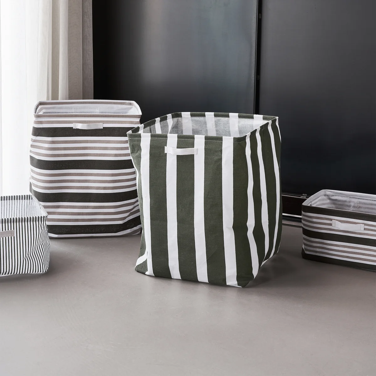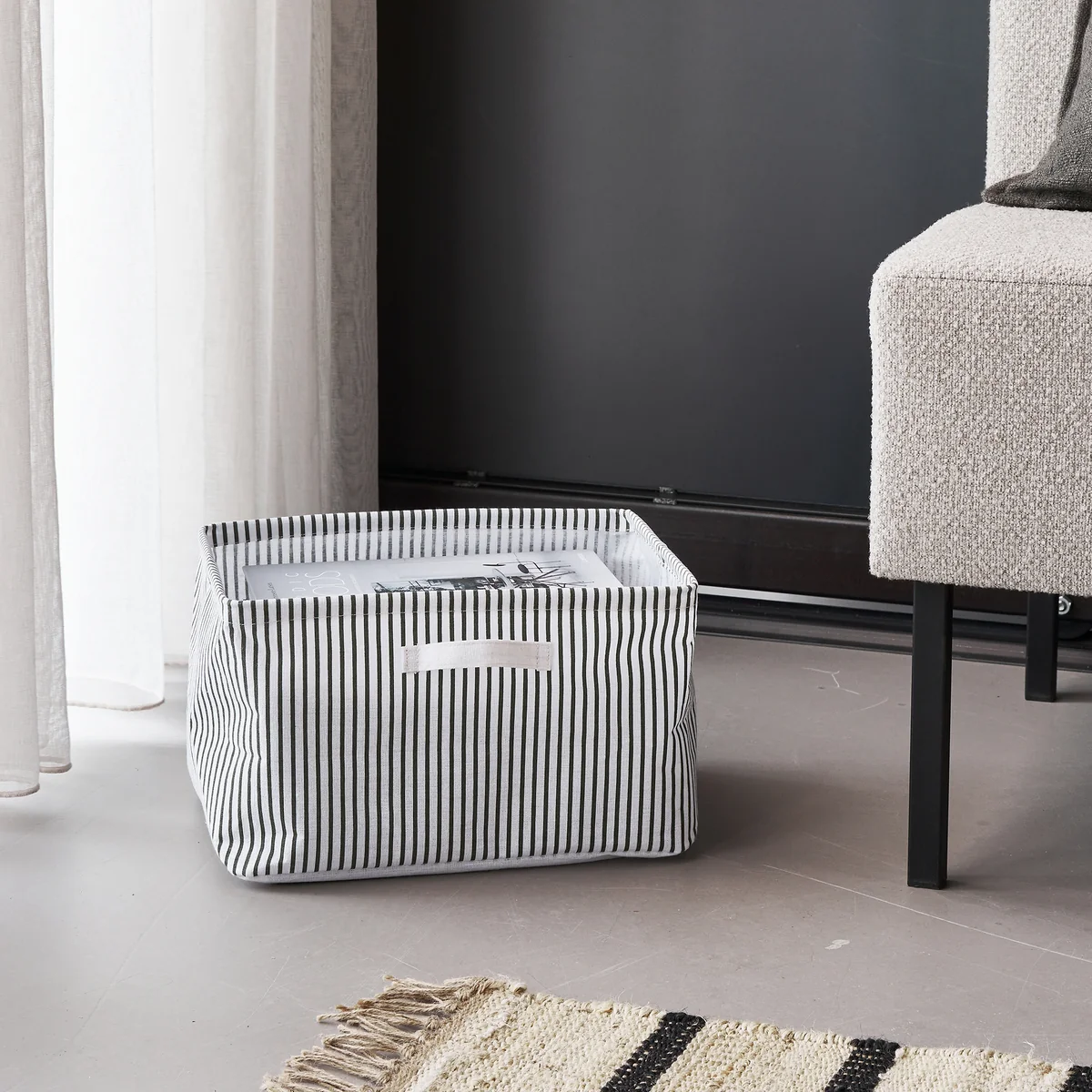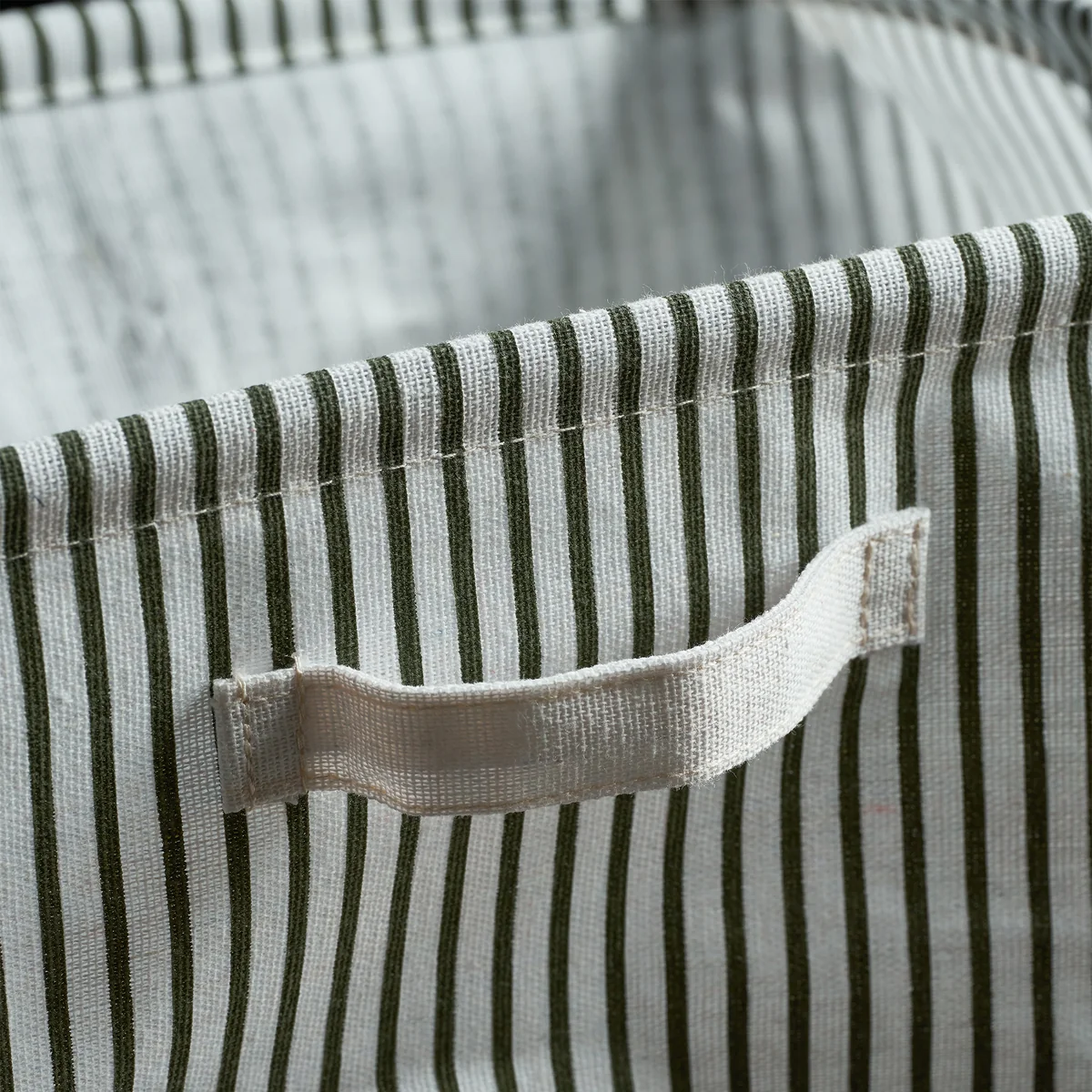 De Store opbergmand van House Doctor is een praktisch woonaccessoire. Het materiaal is stevig genoeg om de mand op zichzelf te laten staan, maar tegelijkertijd licht genoeg om hem snel op te vouwen en op te bergen. De strepen geven de Store -De strepen geven de mand een nonchalant tintje en maken hem tot de ideale aanvulling in de badkamer, slaapkamer of woonkamer - overal waar orde nodig is. Wanneer de mand is uitgevouwen, kunnen er nog enkele plooien zichtbaar zijn, wat een charmant accent aan het ontwerp toevoegt.
