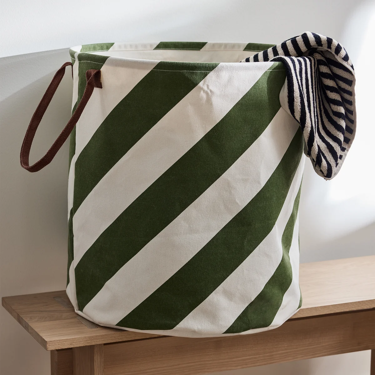 Met een afmeting van Ø52 x H54 cm biedt de Sakki opbergmand voldoende opbergruimte voor verschillende spullen, van wasgoed en beddengoed tot speelgoed en dekens. Het veelzijdige ontwerp past naadloos in elke kamer en helpt bij het creëren van een opgeruimde en georganiseerde omgeving.