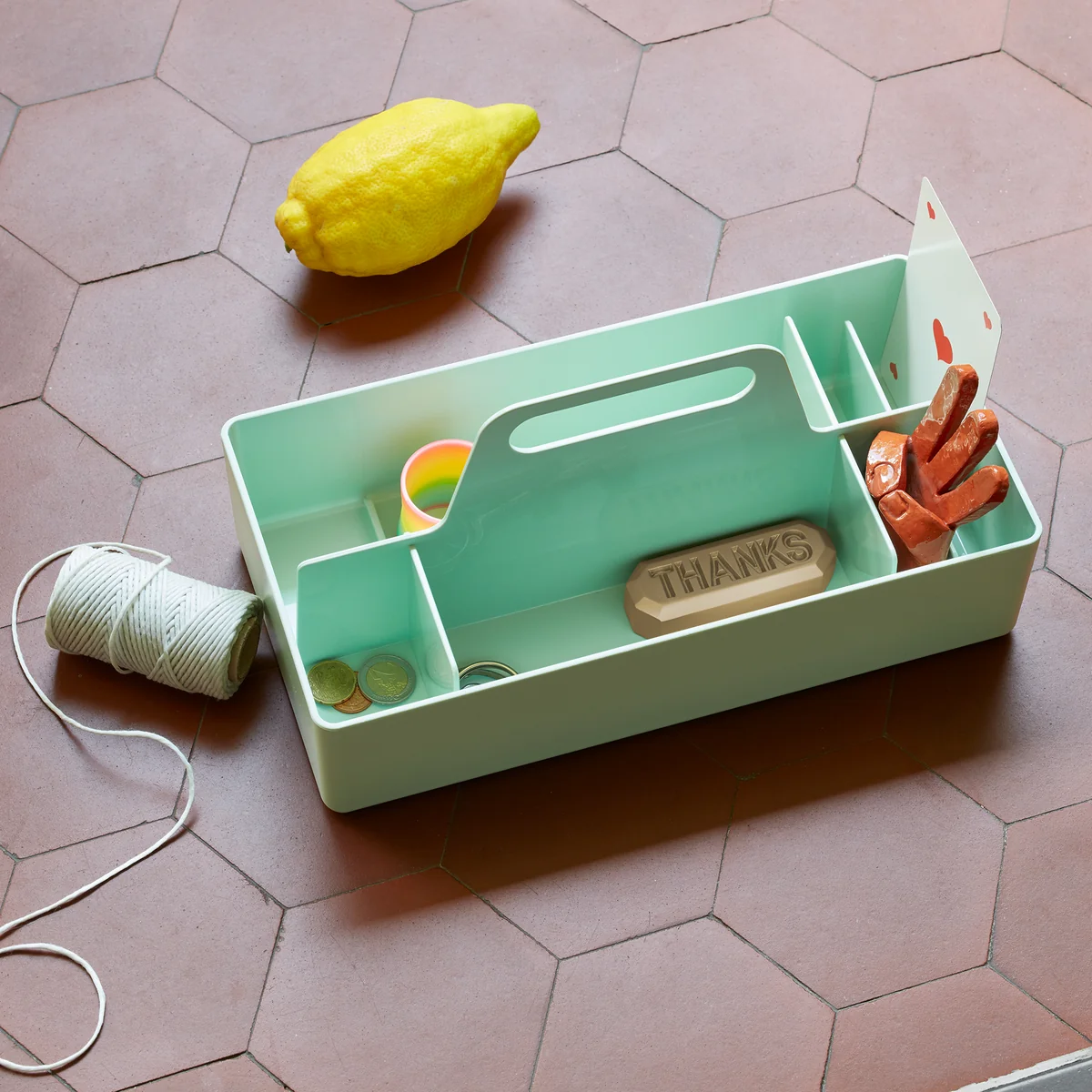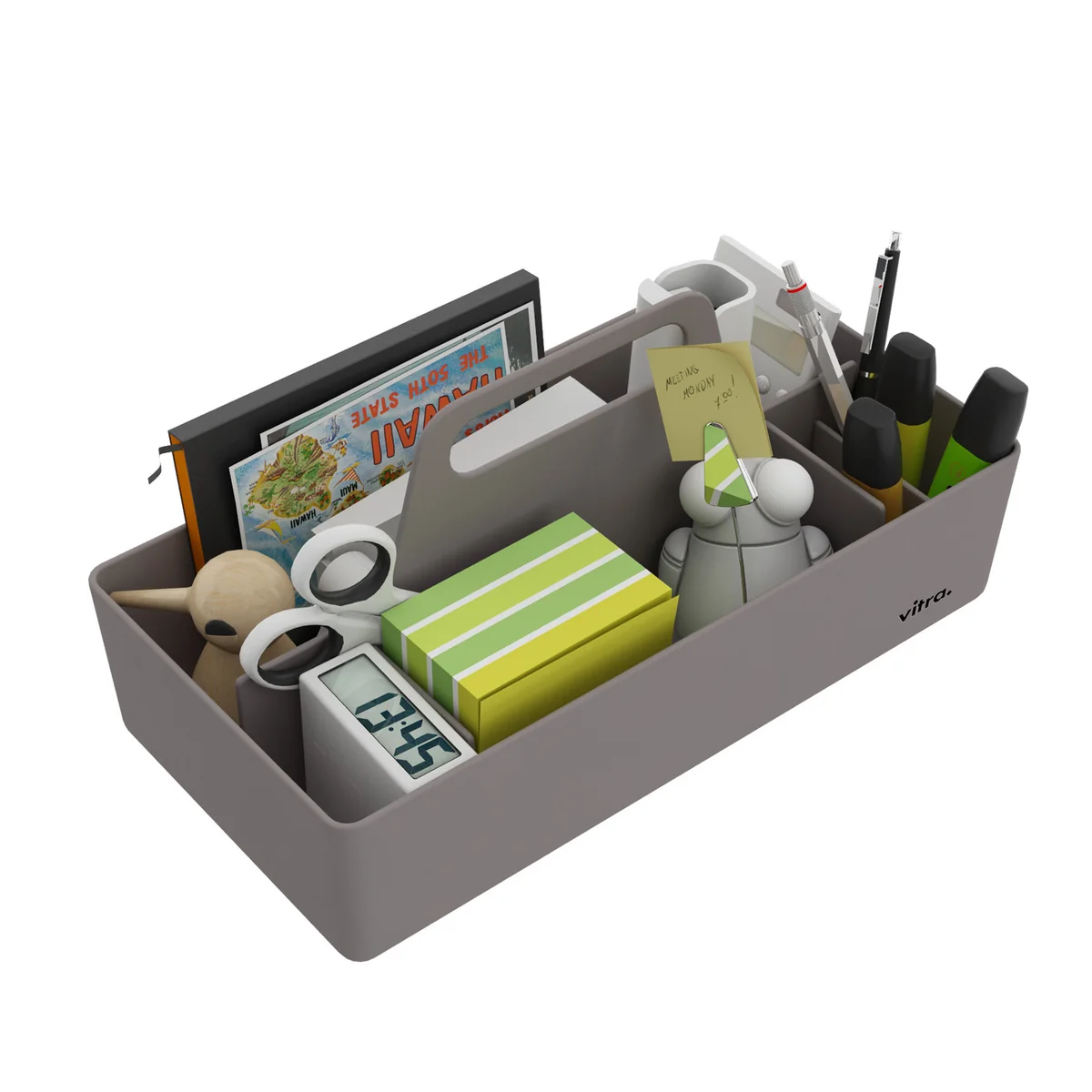 De Storage Toolbox van Vitra heeft meerdere vakken in verschillende maten en is gemaakt van spuitgegoten kunststof. Een versie van gerecycled materiaal is ook verkrijgbaar als limited edition.