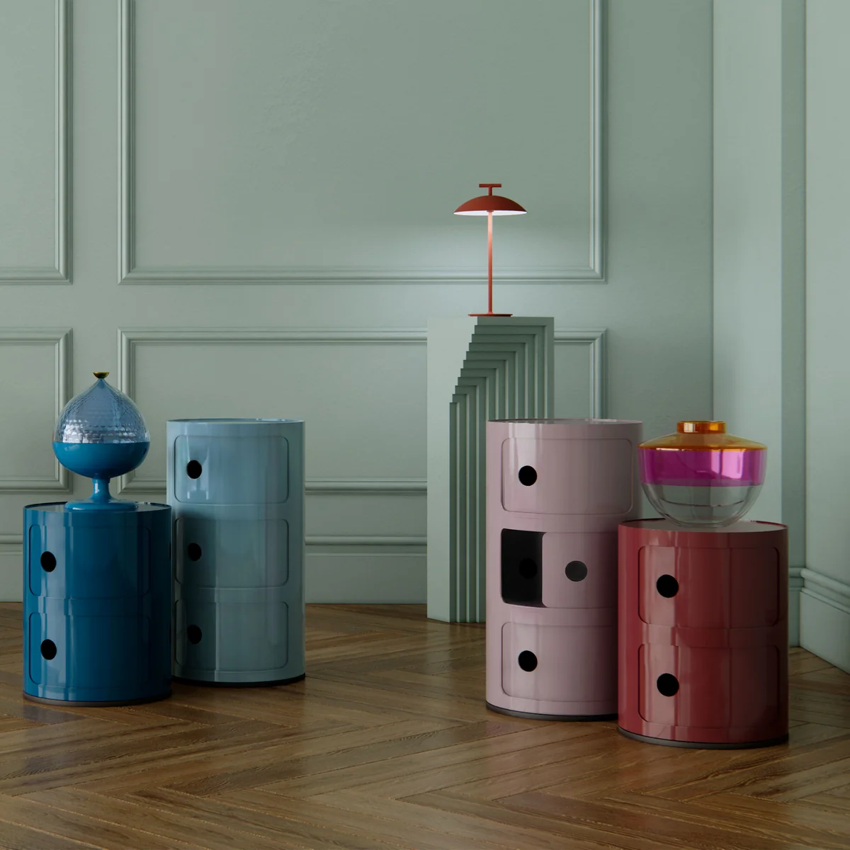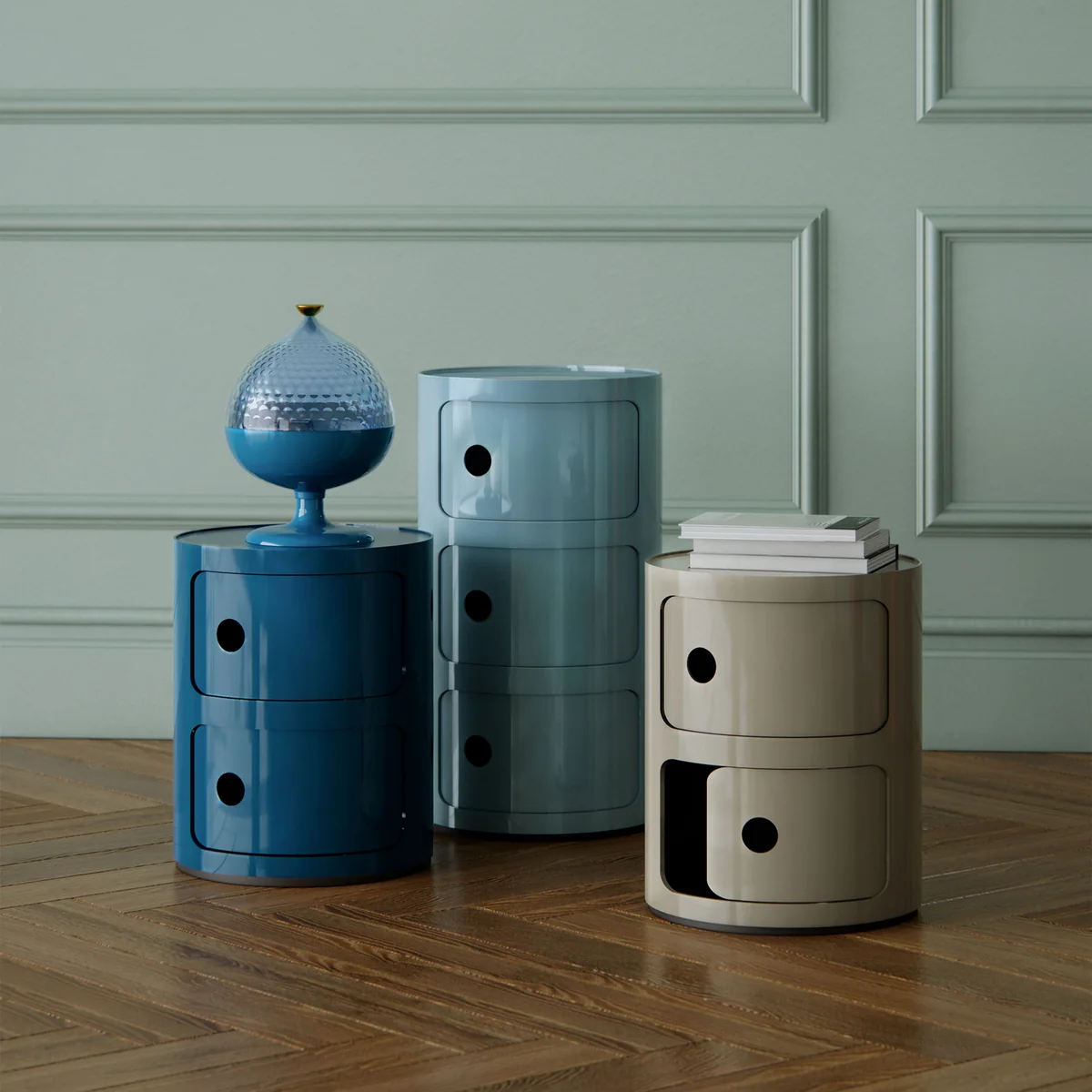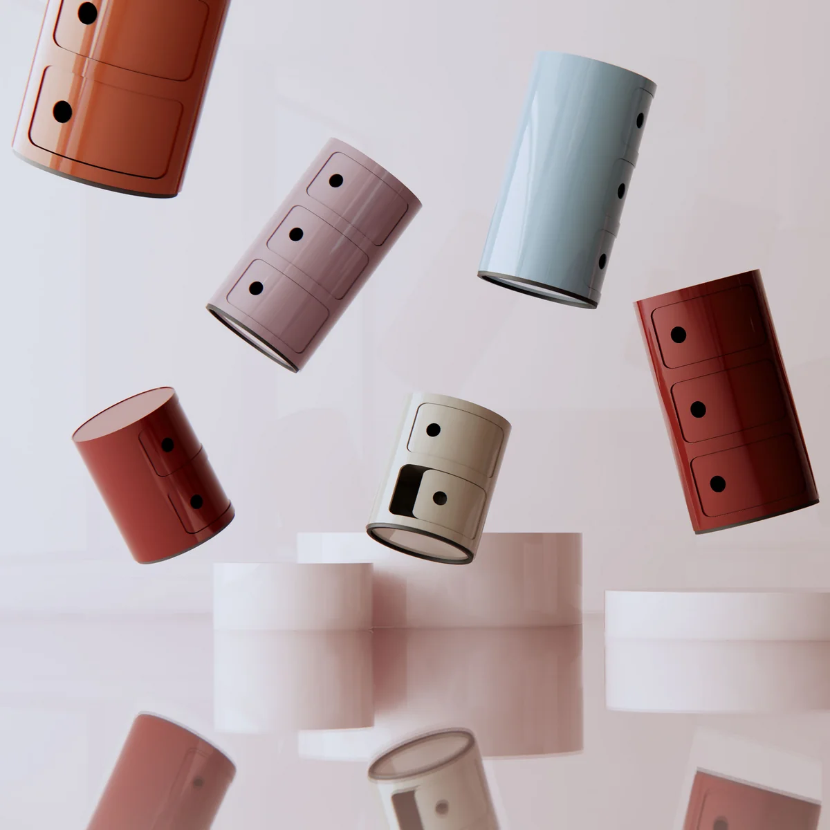De modulaire elementen Componibili werden in 1969 ontwikkeld door Anna Castelli Ferrieri om te voldoen aan de meest uiteenlopende gebruikseisen. De containers van Kartell kunnen in alle delen van het huis worden gebruikt: in de badkamer, slaapkamer, keuken en woonkamer, maar ook in de kinderkamer.