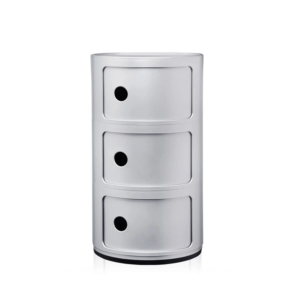 De Componibili zijn verkrijgbaar in ronde en vierkante versies en kunnen ook op wieltjes worden geleverd. Flexibel, functioneel, praktisch: de Componibili zijn een designklassieker met een traditie van dertig jaar die veel erkenning heeft gekregen voor de beknoptheid en innovatie van zijn ontwerp en die al lang in de permanente tentoonstelling van het Museum of Modern Art in New York en het Centre George Pompidou in Parijs is opgenomen.