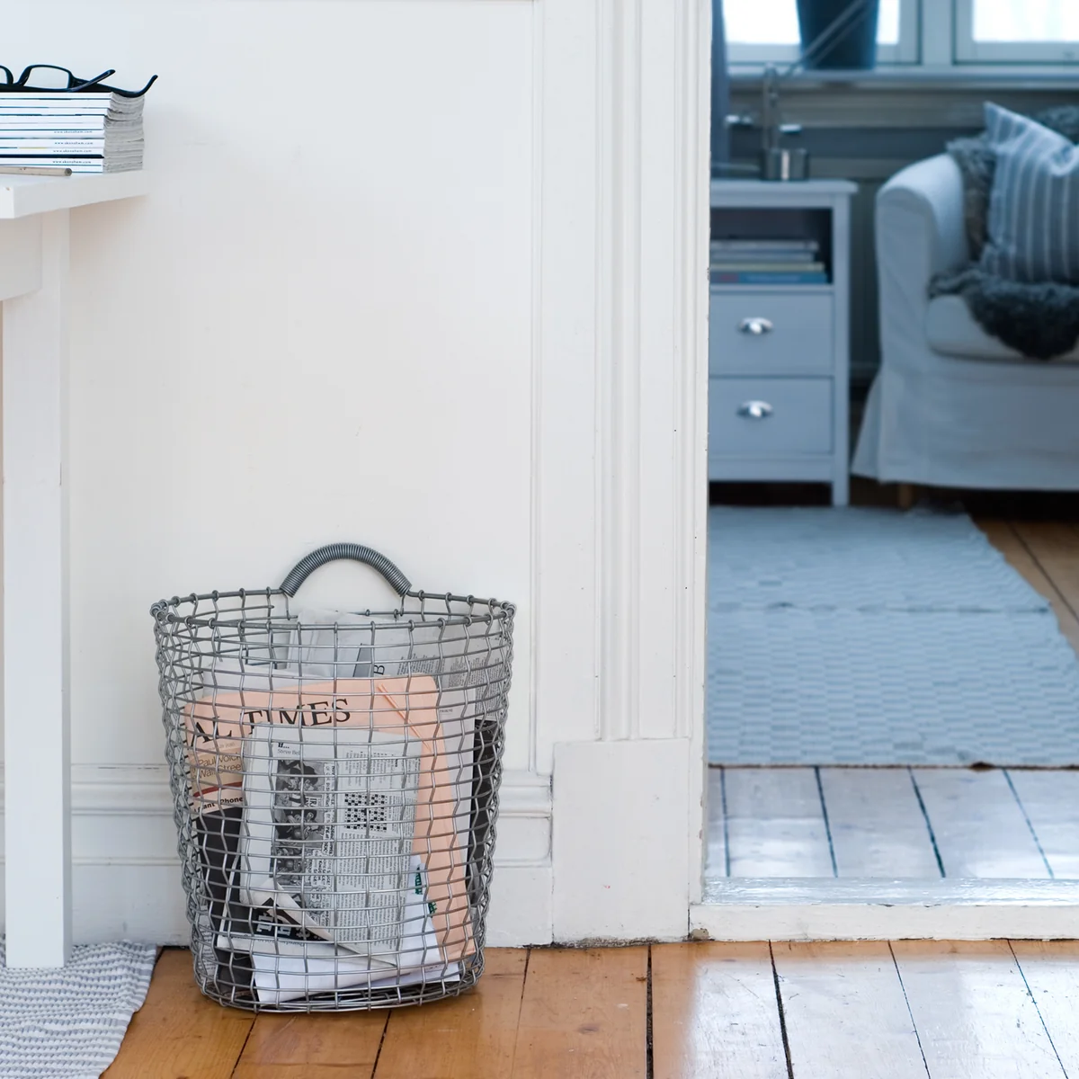 De Bin 18 draadmand van Korbo heeft een handvat, dat aan de muur kan worden opgehangen met behulp van een extra haak. Het is bijzonder geschikt voor elke mogelijke vorm van opslag: voor aardappelen, ballen, handschoenen, als papieren mandje of voor kranten - het maakt niet uit waar u het plaatst - het voldoet aan uw eisen gedurende een lange tijd.