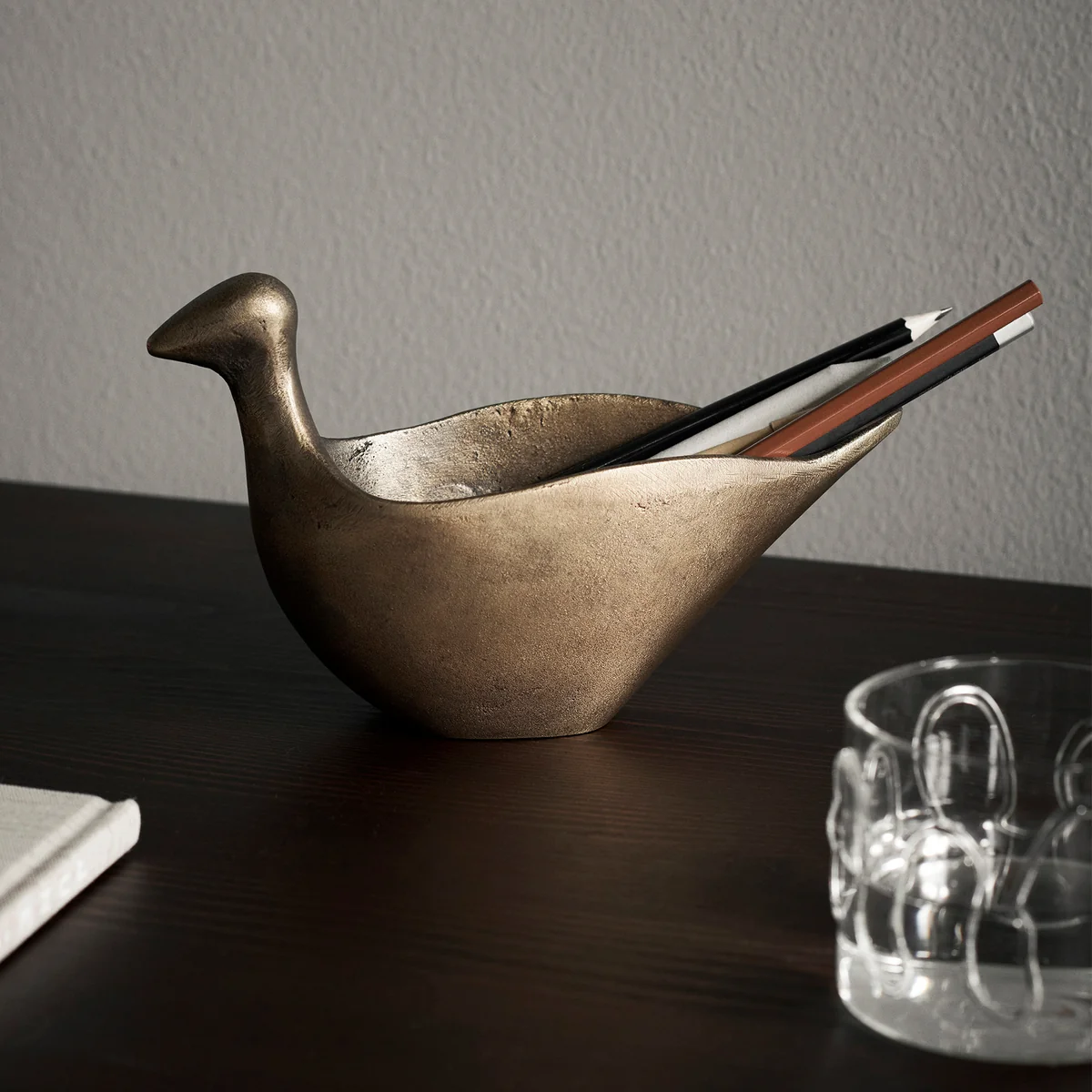 De Coot pennenhouder van Ferm Living is een uniek en milieuvriendelijk accessoire dat de functionaliteit van een pennenhouder op een heel bijzondere manier combineert met creatief design. Gemaakt van gerecycled gegoten aluminium in de vorm van een waterkip, belichaamt deze pennenhouder een harmonieuze combinatie van duurzaamheid en kunst. Het originele ontwerp voegt een speels tintje toe aan elke kamer en maakt het tegelijkertijd een blikvanger. De Coot pennenhouder is niet alleen een praktisch hulpmiddel om schrijfgerei bij de hand te houden, maar ook een kunstwerk dat gesprekken stimuleert. Deze combinatie van milieubewustzijn en creatief design maakt het tot een symbool voor de duurzame wooncultuur en onderstreept de inzet van Ferm Living voor milieuvriendelijke producten. Met de Coot pennenhouder kun je niet alleen je schrijfwaren organiseren, maar ook een statement maken voor recycling en duurzaam design.
