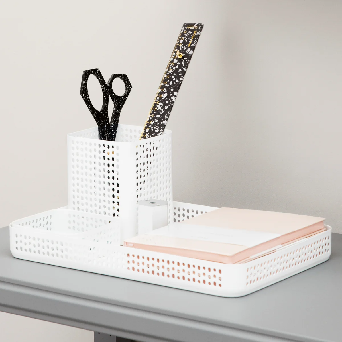 De Nic Nac Tray 1 maakt deel uit van de gelijknamige collectie nuttige opbergdozen, ontworpen door Nicholai Wiig Hansenby voor Normann Copenhagen. In verschillende maten en dankzij de onderhoudsvriendelijke poedercoating zijn de trays geschikt voor het bureaublad, de badkamer of de keuken.