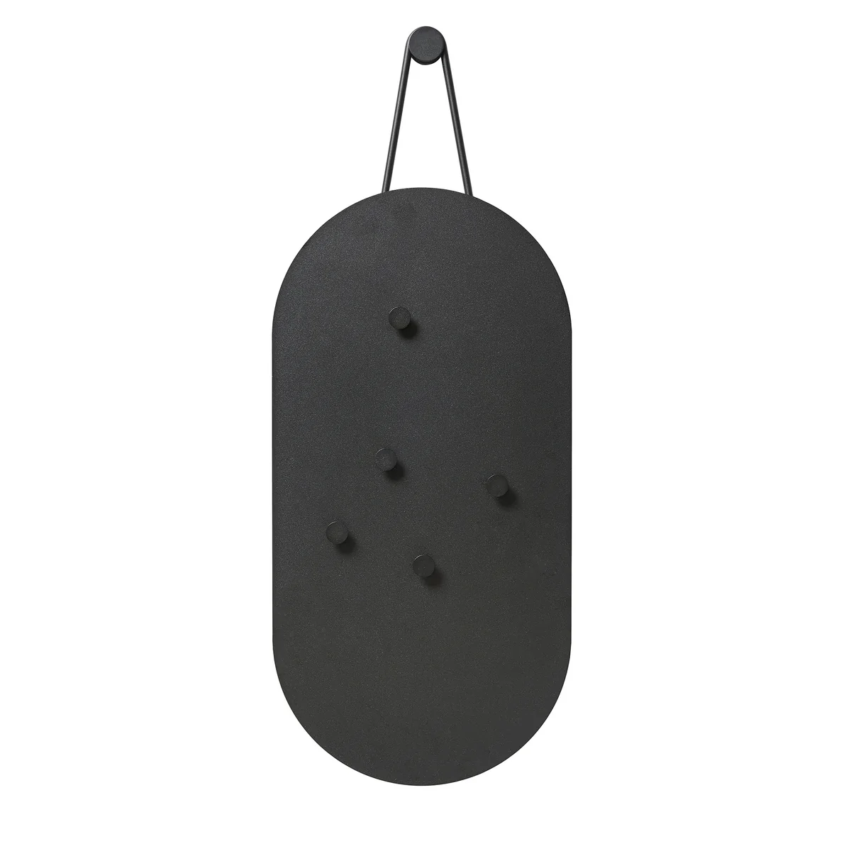 Het ovale magneetbord kan horizontaal of verticaal worden opgehangen en wordt geleverd met vijf bijpassende magneten. Het is gemaakt van metaal met poedercoating.