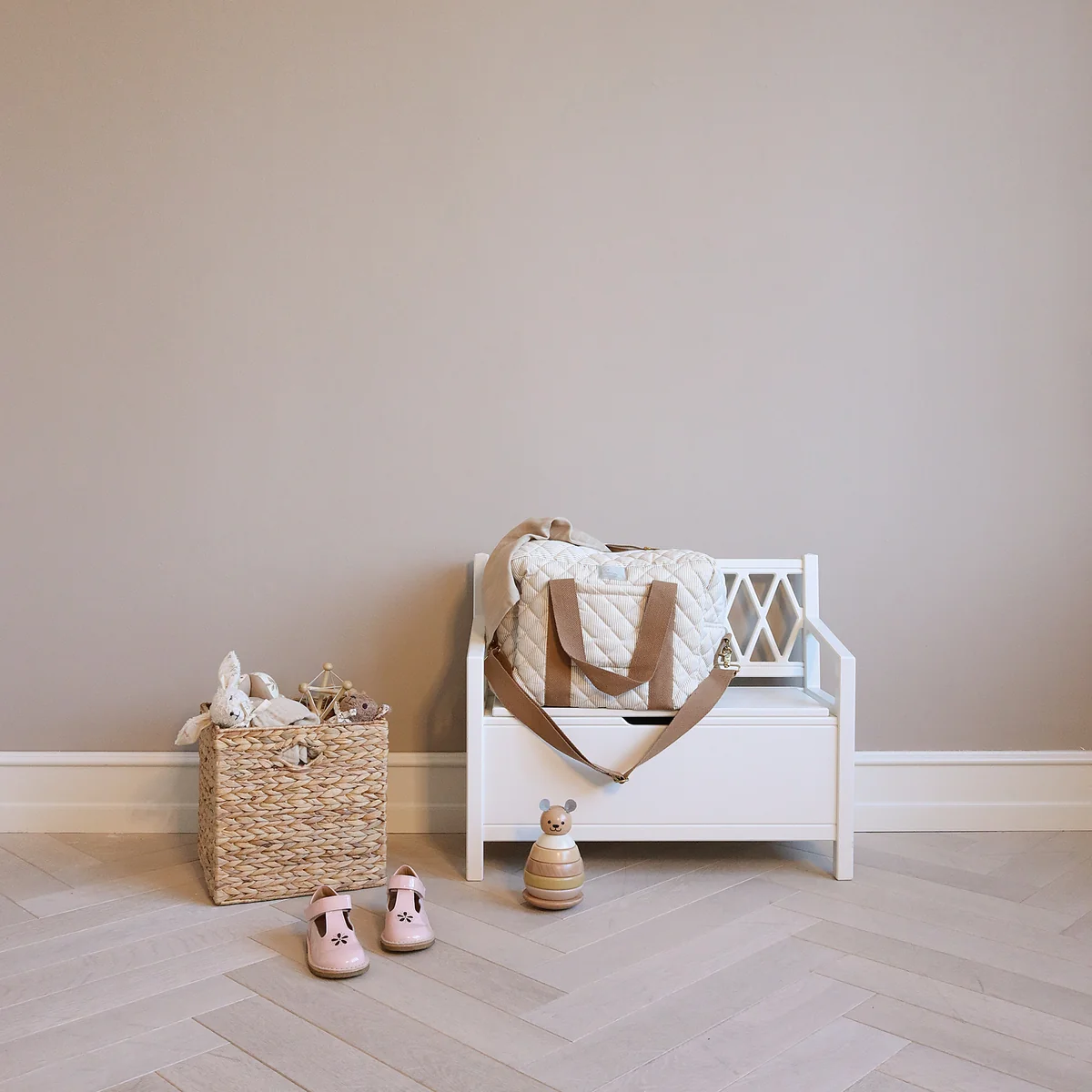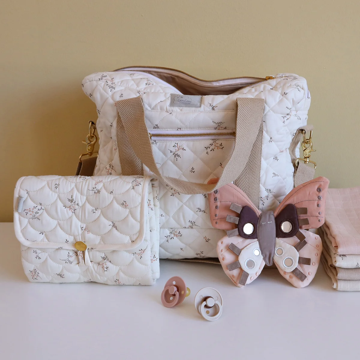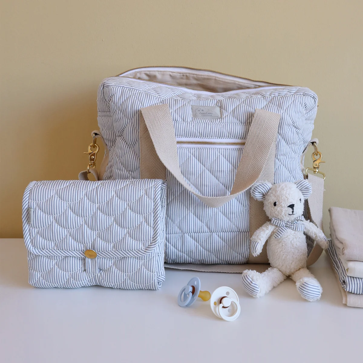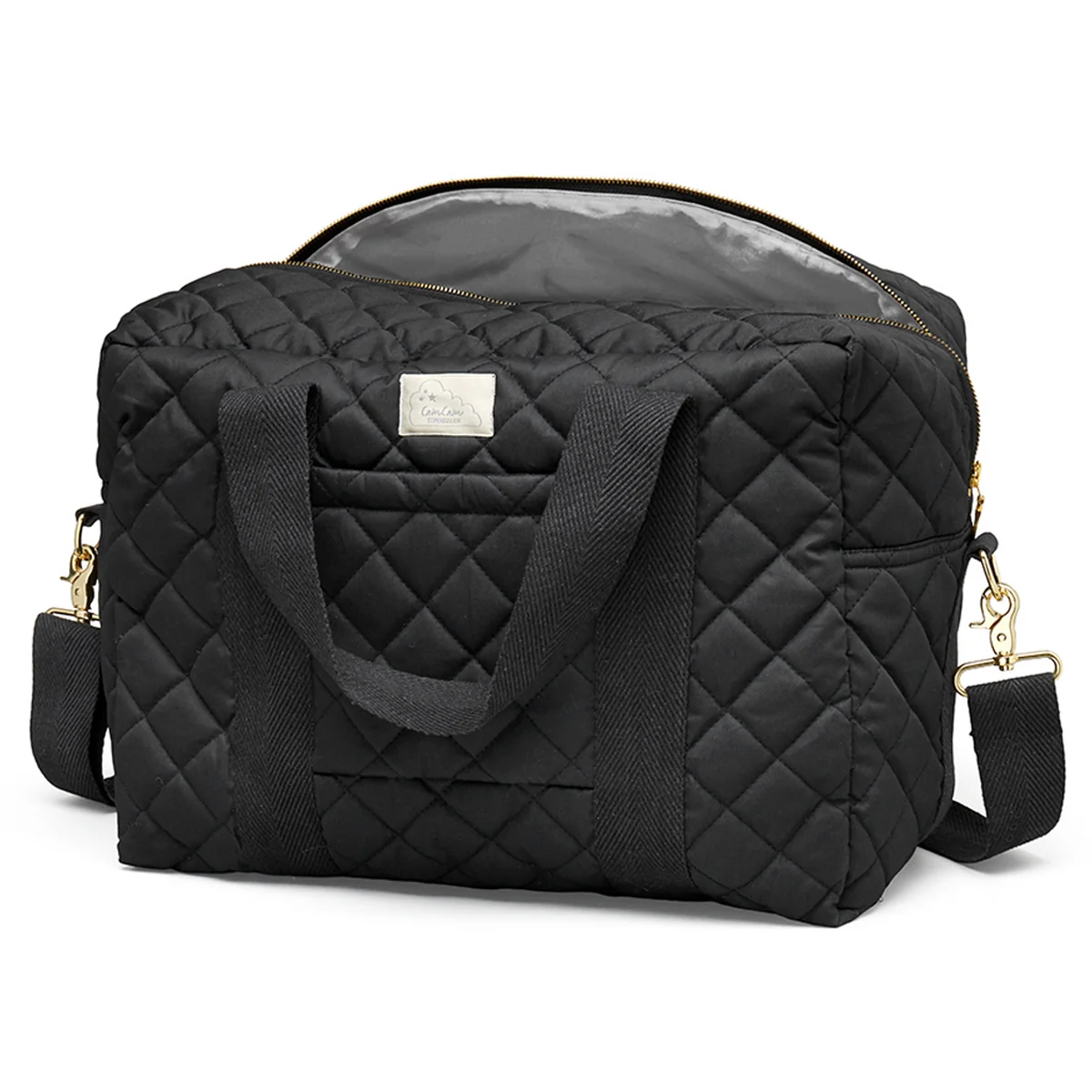 Cam Cam Copenhagen De luiertas van Deense fabrikant maakt indruk met zijn functionaliteit en uiterst stijlvolle, gewatteerde look. De tas heeft een waterafstotende coating aan zowel de binnen- als buitenkant, waardoor de tas duurzaam en optimaal beschermd is. De luiertas heeft een praktische, verstelbare schouderriem, die ideaal is om over de handgreep van de kinderwagen te hangen. Dankzij het minimalistische ontwerp kan de tas ook na het luier verschonen nog gebruikt worden.