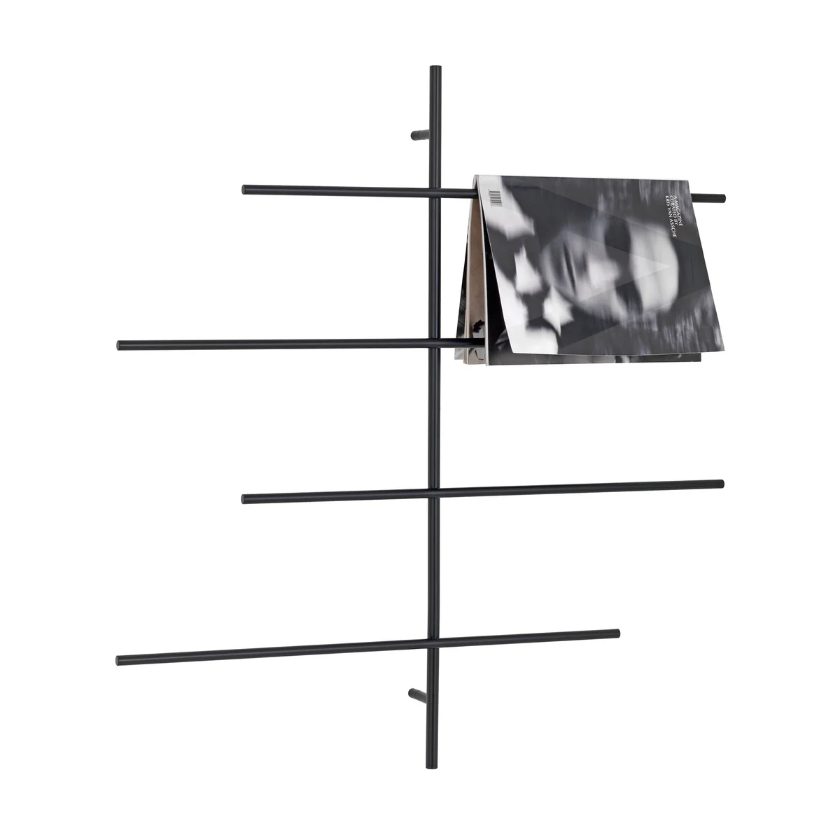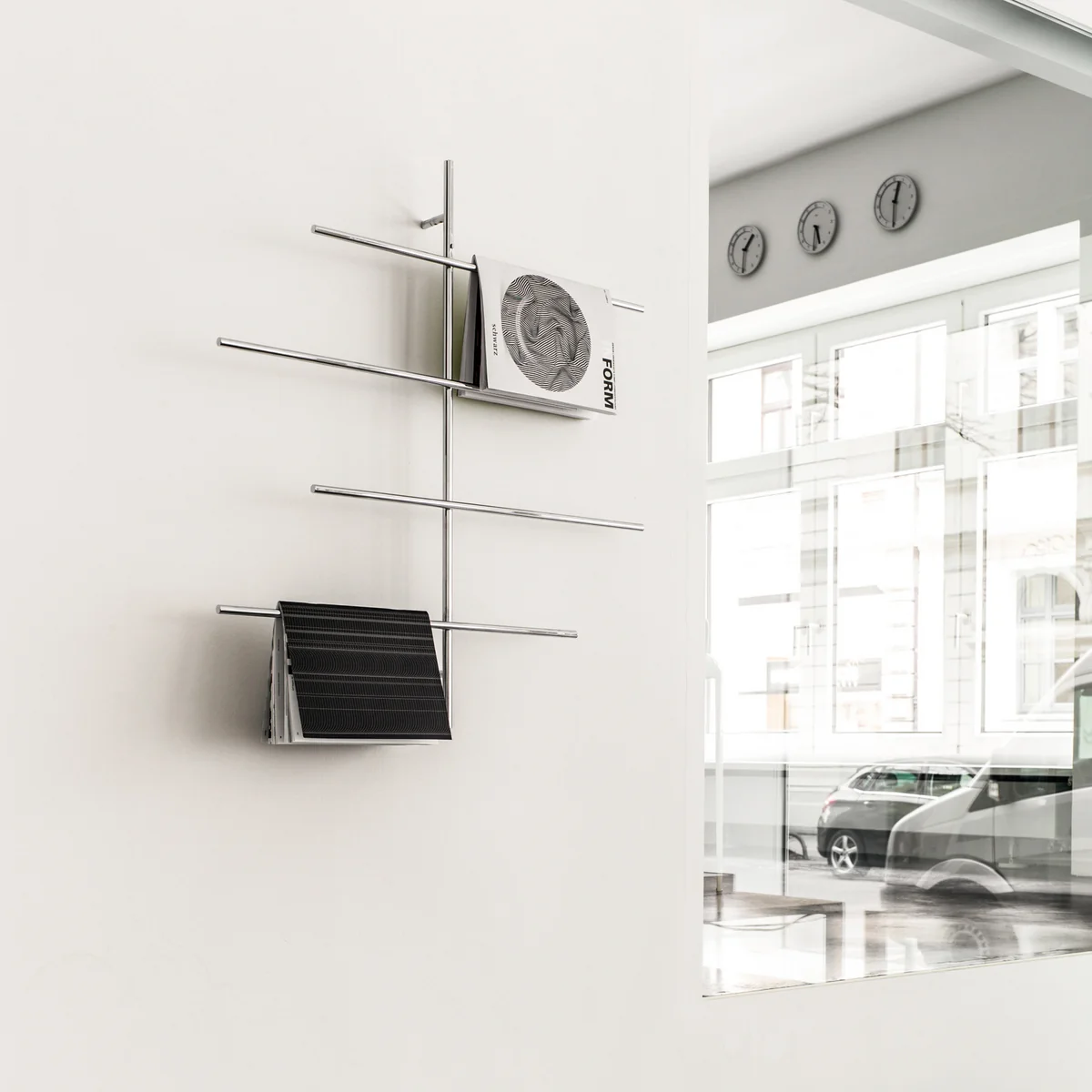 Dankzij het Sketch tijdschriftenrek van Schönbuch kunnen uw mooiste tijdschriften nu als onderdeel van een originele wanddecoratie worden tentoongesteld. De tijdschriftenhouder is voorzien van een verticale balk en vier onregelmatig geplaatste dwarsliggers. Om een origineel kunstwerk voor de muur te maken, moeten de tijdschriften gewoon over de tralies worden gevouwen.