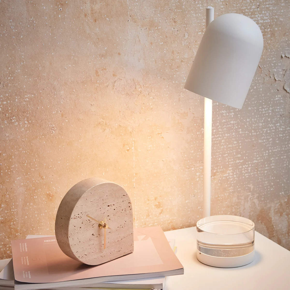 In een prachtig marmeren ontwerp krijgt de klok een natuurlijke uitstraling die hem elegant maakt. De klok zorgt voor subtiele details op de vensterbank, op de plank of op het bureau. Aangevuld met pampagras of andere droge planten in een eenvoudige vaas kan een ingetogen maar expressief interieurontwerp worden gecreëerd dat modern oogt en tegelijkertijd warm en huiselijk is.