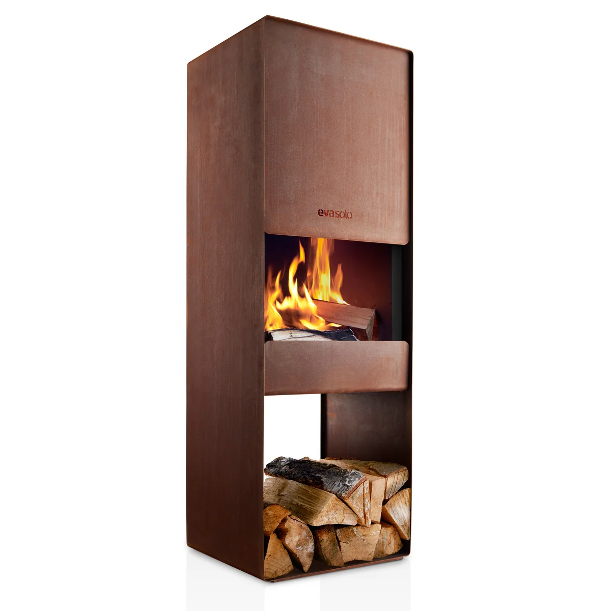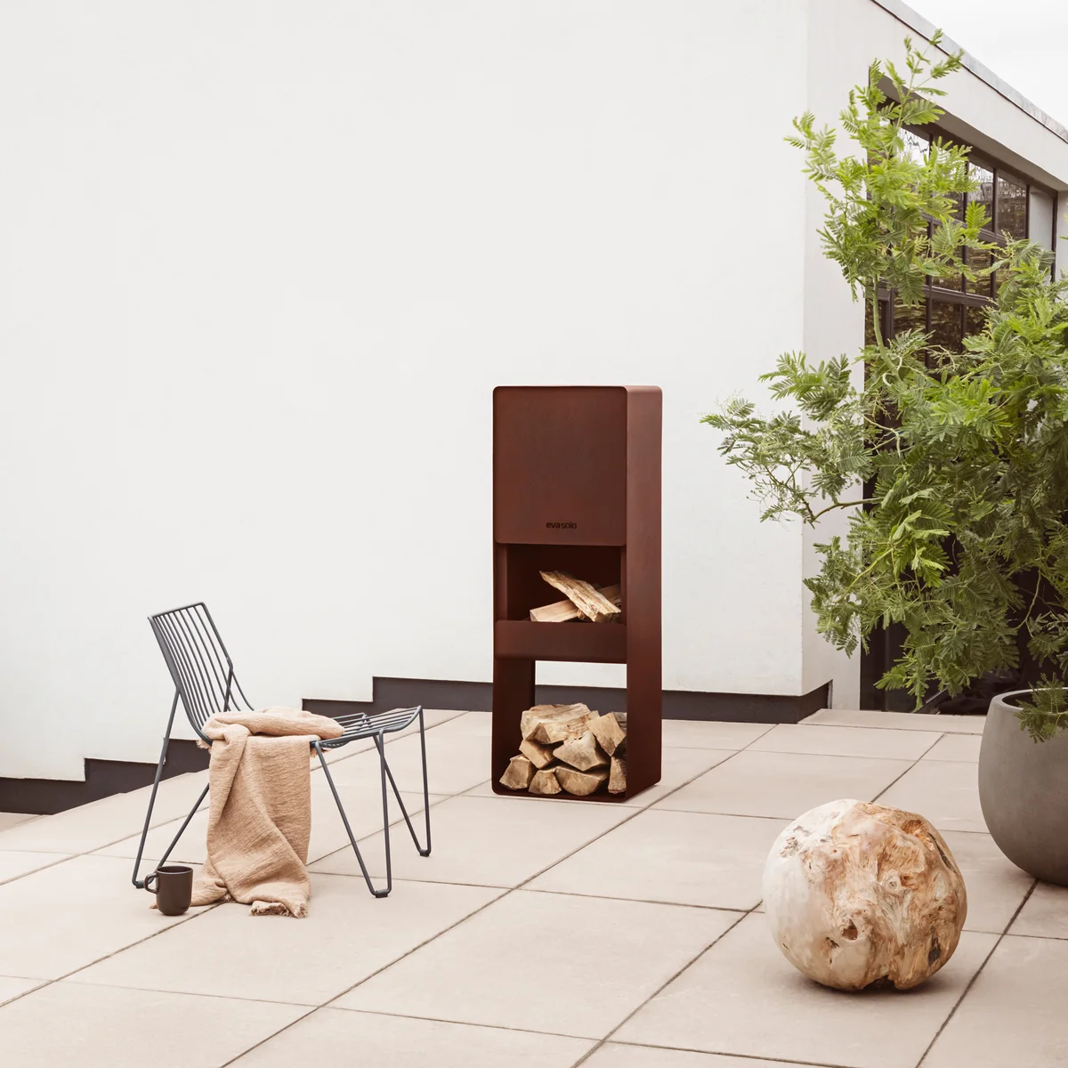 Met de Firebox van Eva Solo kan ook op koele zomeravonden een warme, gezellige sfeer in de tuin worden gecreëerd. De boxy, stalen vuurplaats is zeer geschikt voor buitengebruik en is dankzij de coating goed bestand tegen hitte. Brandhout kan op de benedenverdieping worden opgeslagen, maar de open haard bevindt zich een verdieping hoger. Een geïntegreerde schoorsteen zorgt ervoor dat de rook naar boven kan ontsnappen zonder de gebruiker te storen.