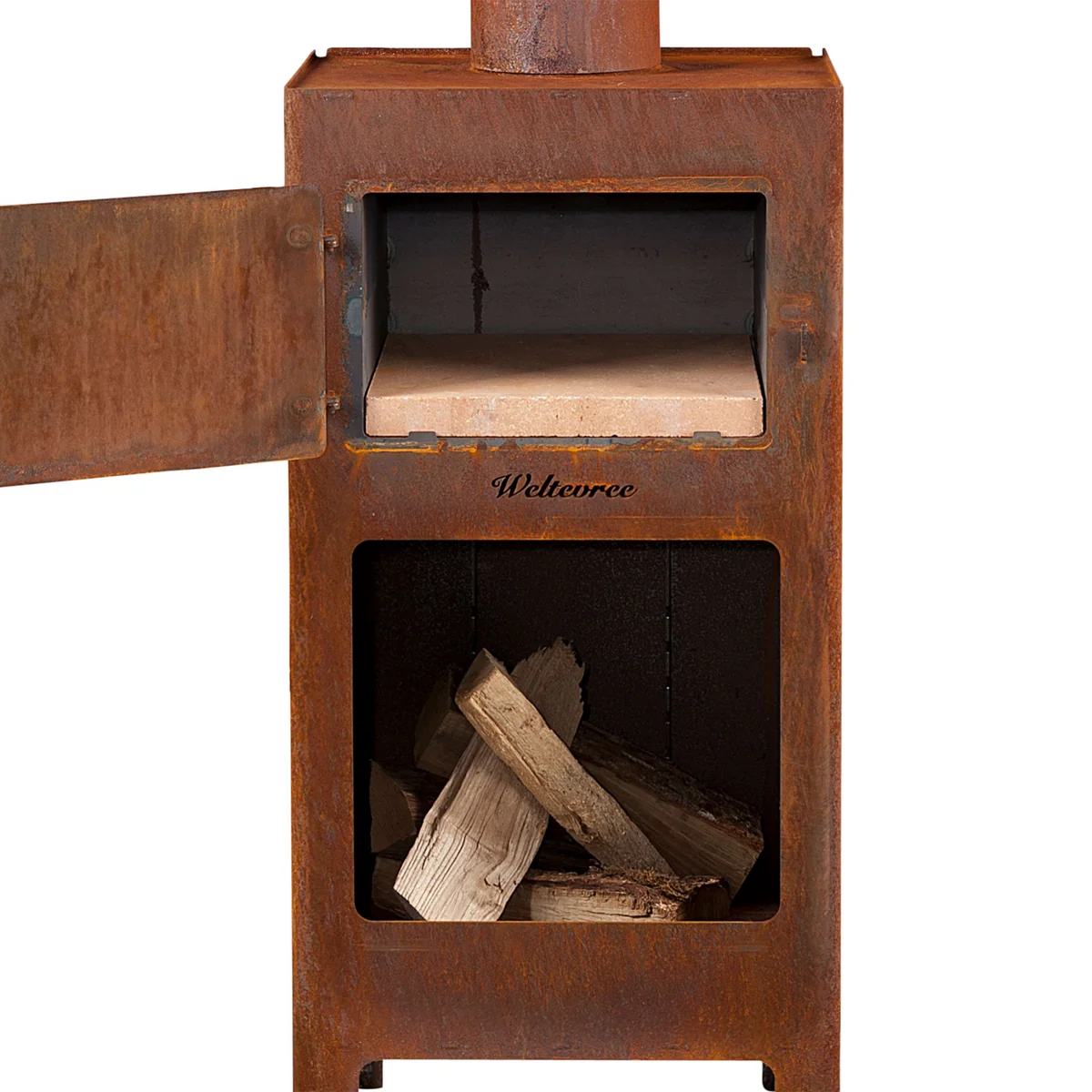 Opmerking: Na enige tijd verandert de buitenoven van kleur door het beschermende oxidatieproces van cortenstaal. Dit is geen gebrek, maar een natuurlijke eigenschap van het materiaal.