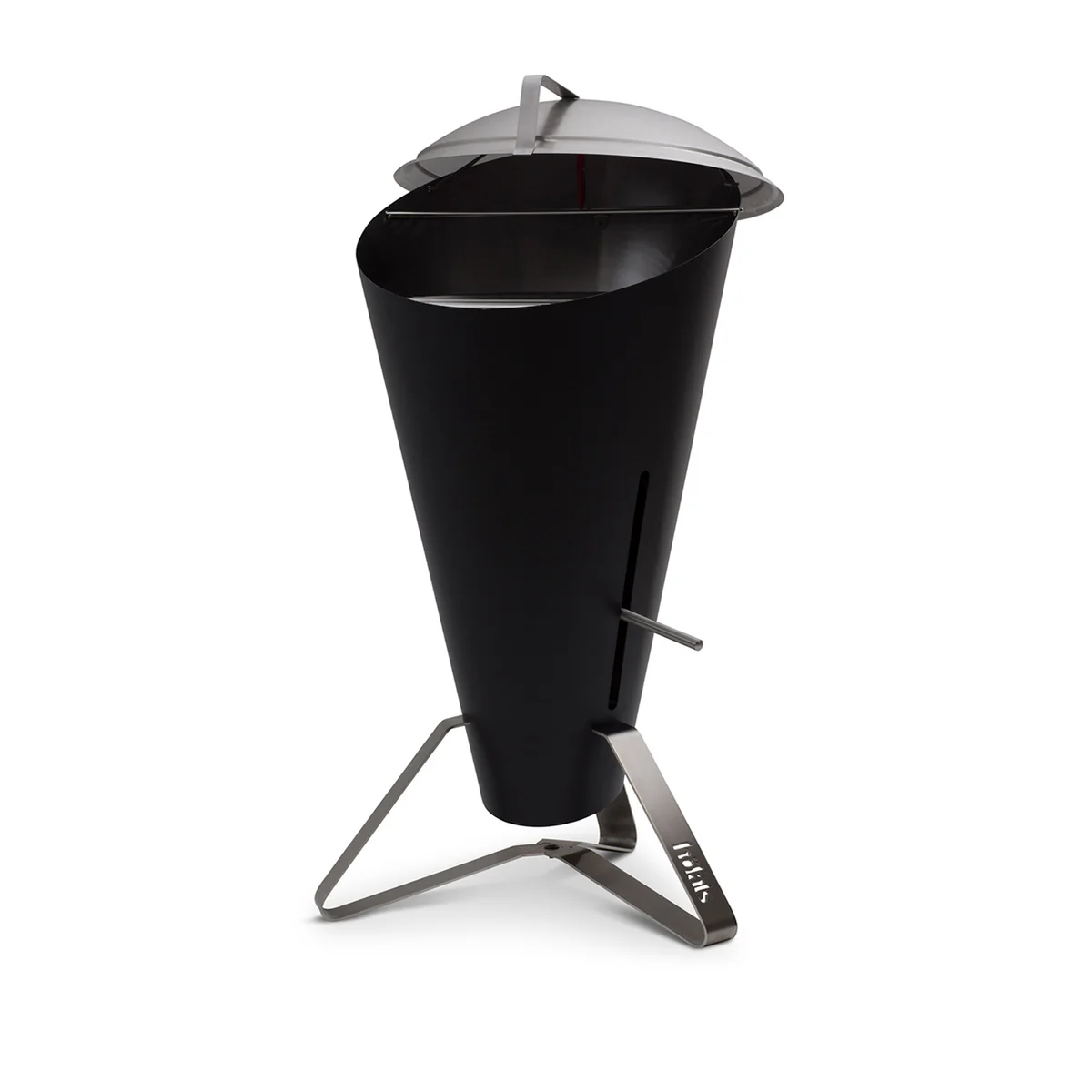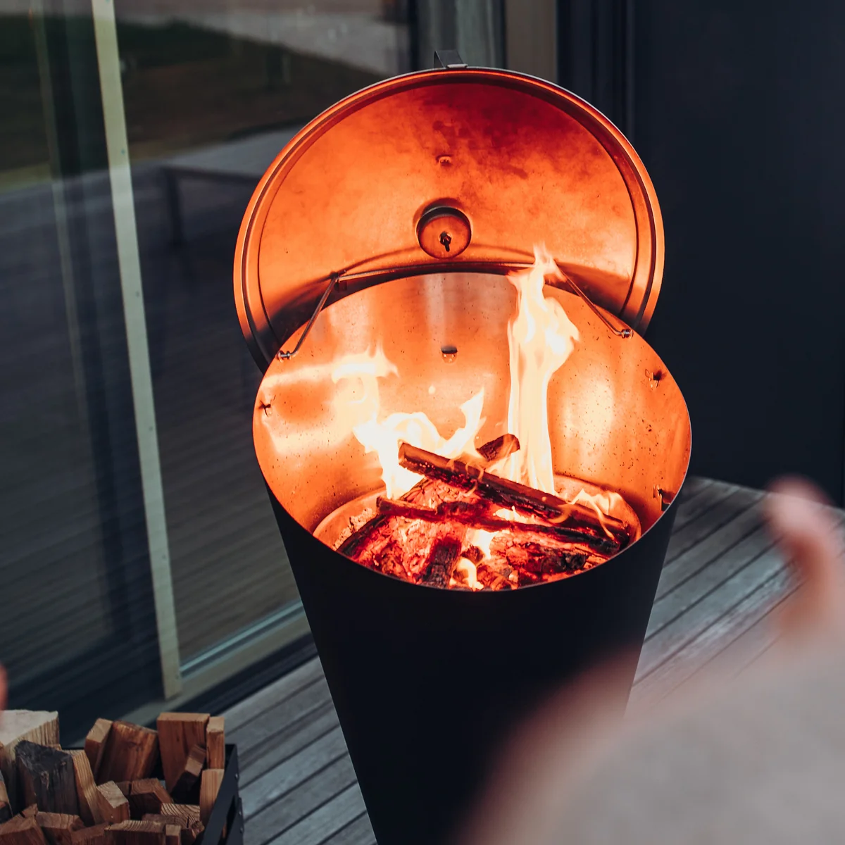 Omdat het rooster tot aan de rand van de trechter kan worden opgetild, kan Cone na het grillen worden omgebouwd tot een open haard. Met het rooster op de hoogste stand kan al met heel weinig hout een geweldige sfeer worden gecreëerd, waardoor de barbecue-avond op een warme en gezellige manier wordt afgesloten.