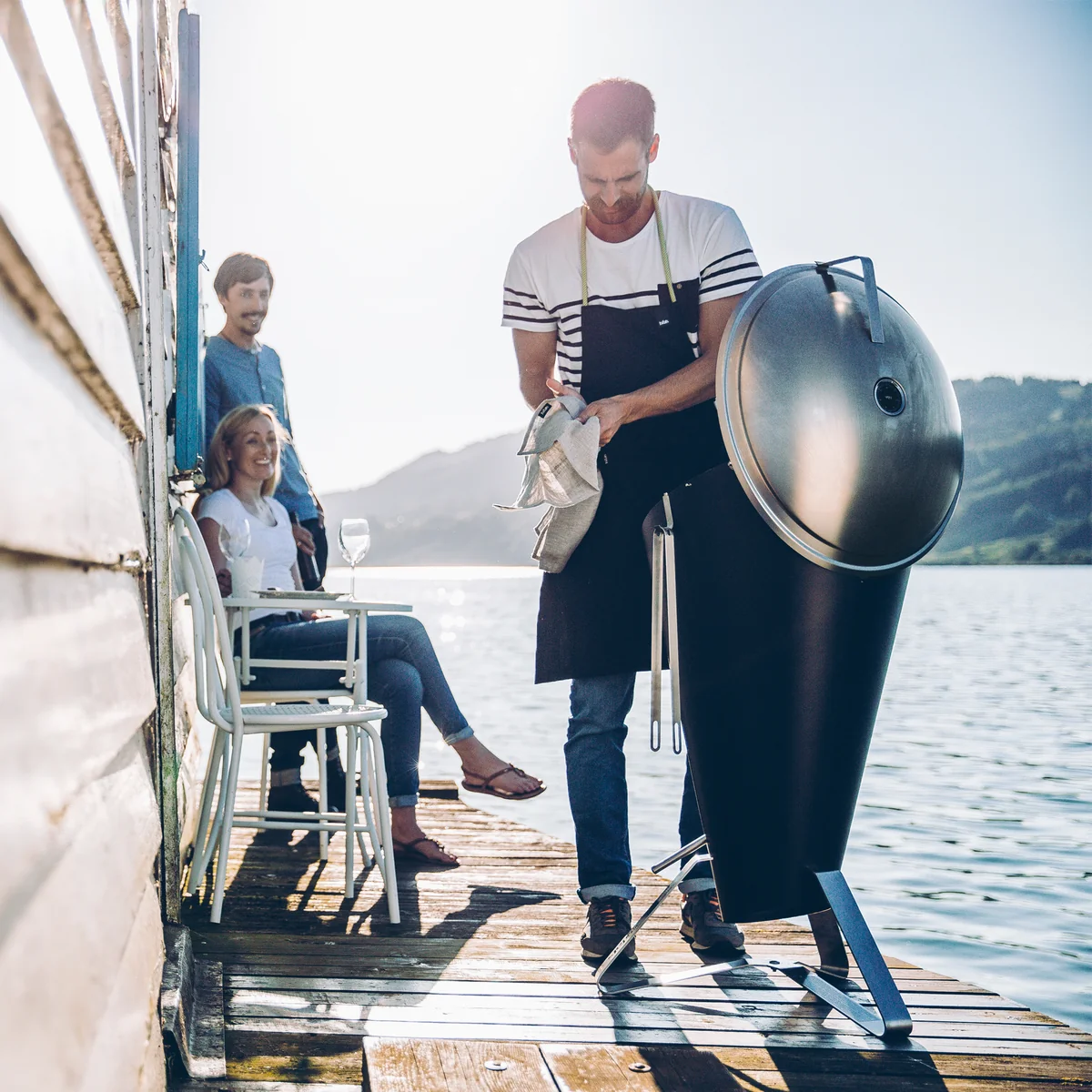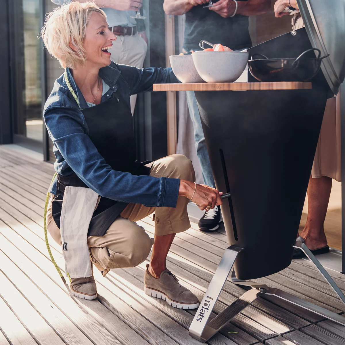 De Cone houtskoolgrill van Höfats is een grill met directe, variabele en intuïtieve warmteregeling. Grillen met houtskool is nog nooit zo ontspannen, veelzijdig, precies en gemakkelijk geweest.