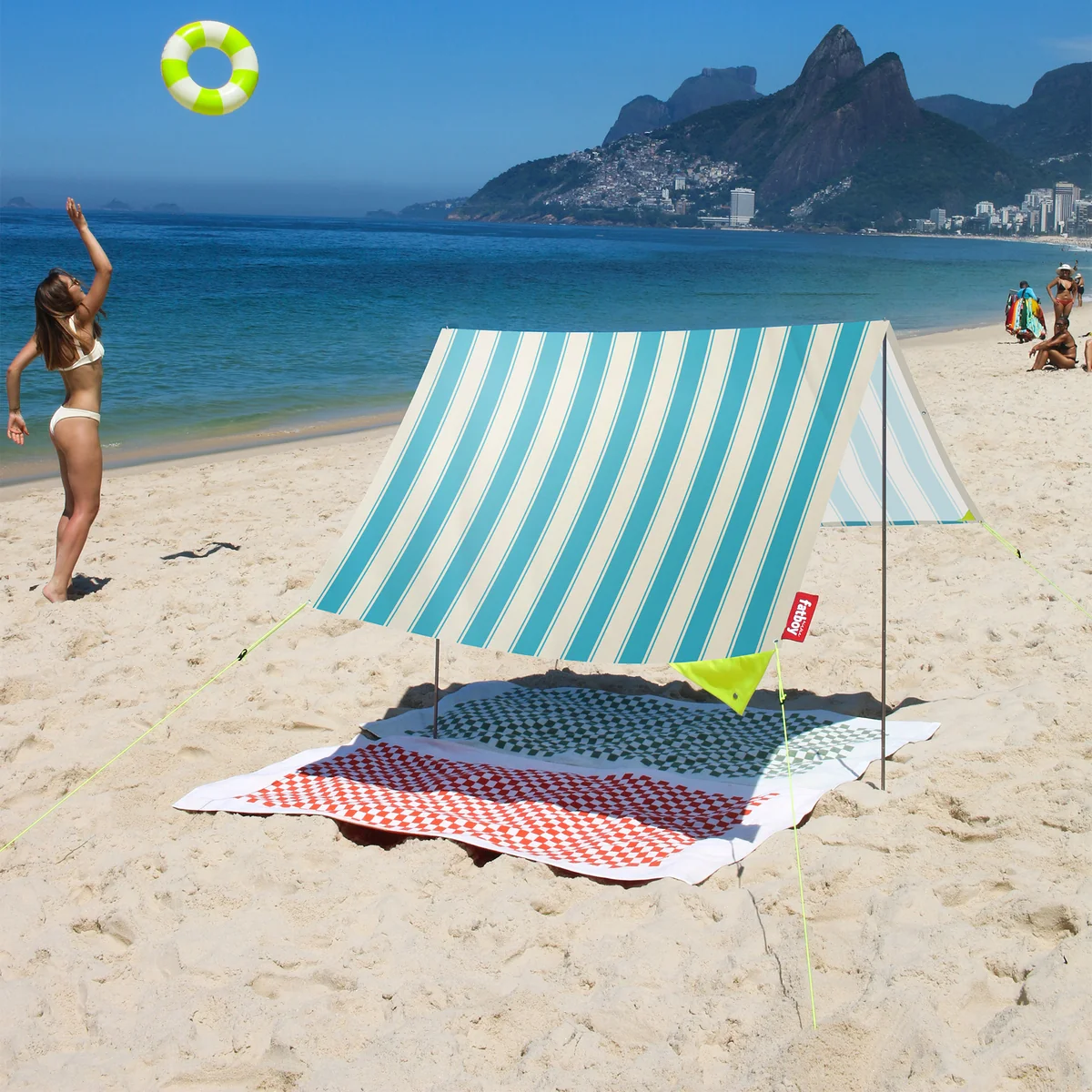 Onder het zonnezeil is plaats voor maximaal 2 volwassenen en 2 kinderen. Dankzij het eenvoudige mechanisme Miasun kan het zonnescherm in een handomdraai door één persoon worden opgezet en ingeklapt. Het zonnescherm van Fatboy is verkrijgbaar in verschillende kleuren en patronen. Het is gemaakt van 100% katoen en kan in de wasmachine worden gewassen op 30°.