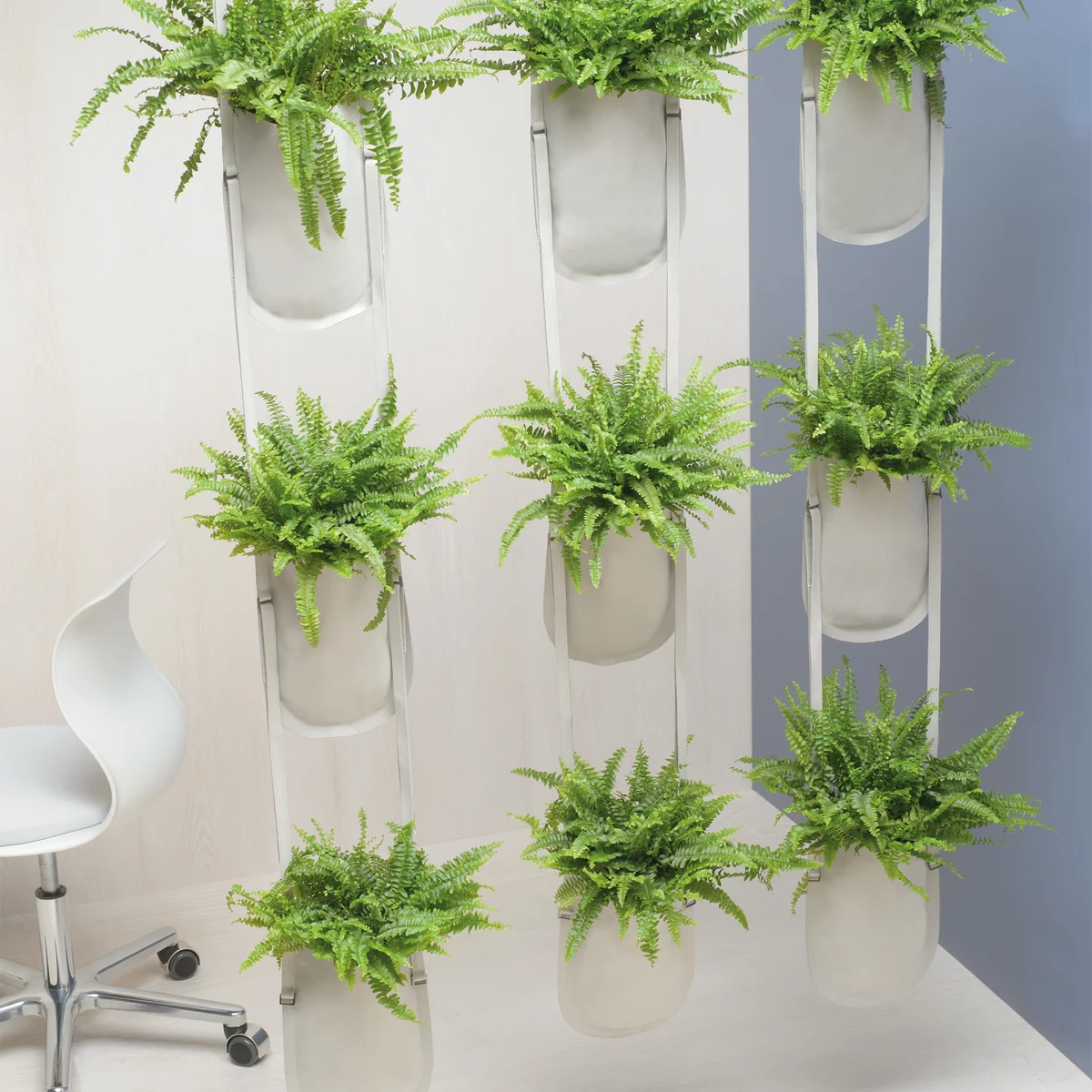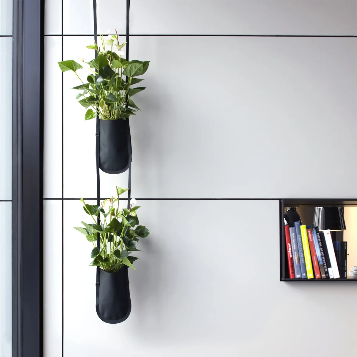 De plantenbakken van textiel zijn praktisch, gemakkelijk te onderhouden en openen een heel spectrum van nieuwe mogelijkheden voor interieurinrichting met planten. Met de klittenbandsluitingen op de draagriemen kunnen de plantzakken worden bevestigd aan wand- en plafondophangingen van Urban Garden en aan palen, haken, oogjes, balken of relingen.