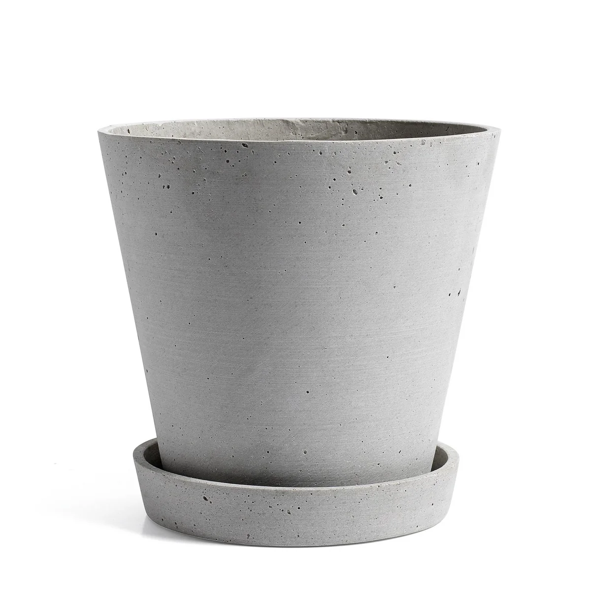 HAY vervaardigt de bloempot van polystone, een kunststof die waterafstotend is en bestand tegen verwering en krassen. Het speciale materiaal geeft de bloempot met schotel de indruk dat hij van gepolijst steen is gemaakt.