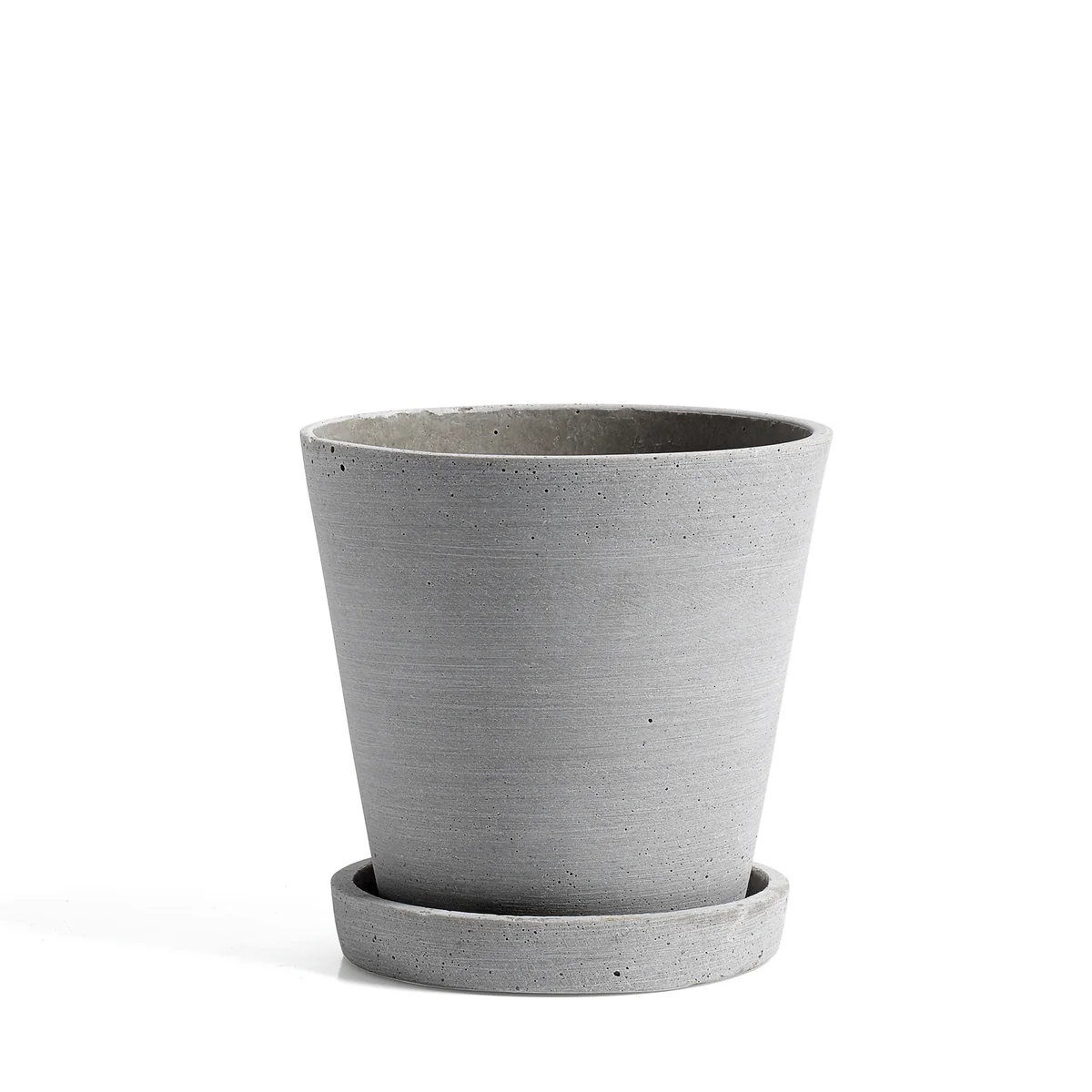 HAY vervaardigt de bloempot van polystone, een kunststof die waterafstotend is en bestand tegen verwering en krassen. Het speciale materiaal geeft de bloempot met schotel de indruk dat hij van gepolijst steen is gemaakt.
