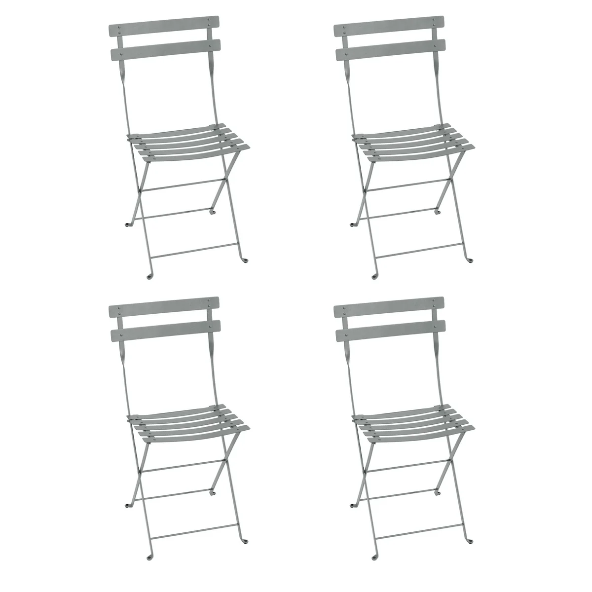 De Bistro Fermob metalen klapstoel uit werd samen met de andere klapmeubelen uit de Bistro -collectie werd ontworpen in 1889. Ze waren al populair bij café-eigenaren en limonadeverkopers in heel Frankrijk toen de Eiffeltoren werd gebouwd en werden al snel erg populair.