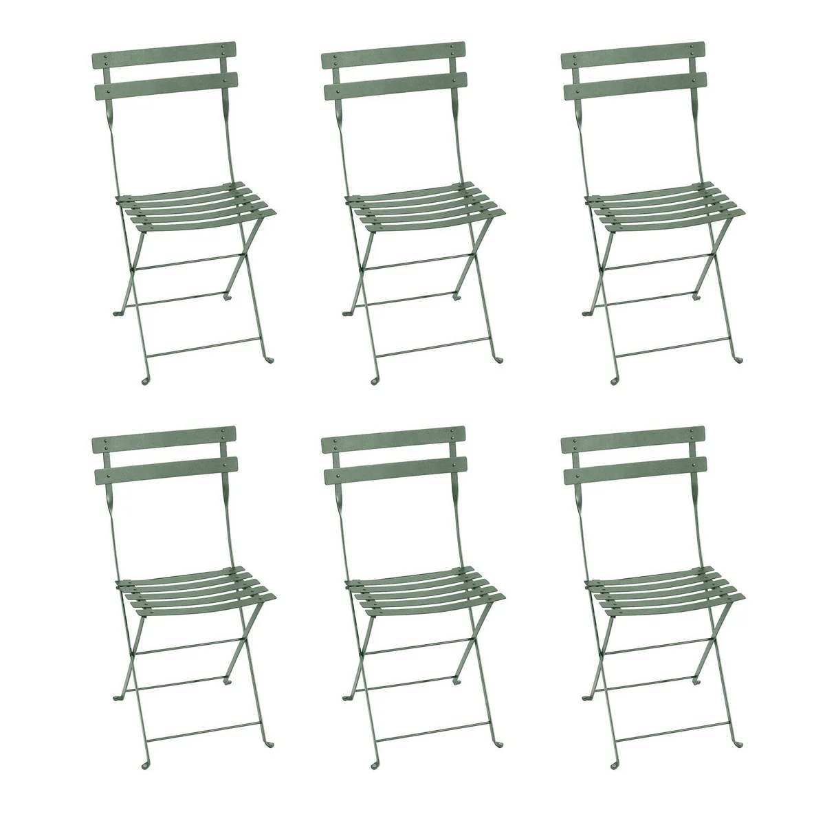 De Bistro Fermob metalen klapstoel uit werd samen met de andere klapmeubelen uit de Bistro -collectie werd ontworpen in 1889. Ze waren al populair bij café-eigenaren en limonadeverkopers in heel Frankrijk toen de Eiffeltoren werd gebouwd en werden al snel erg populair.