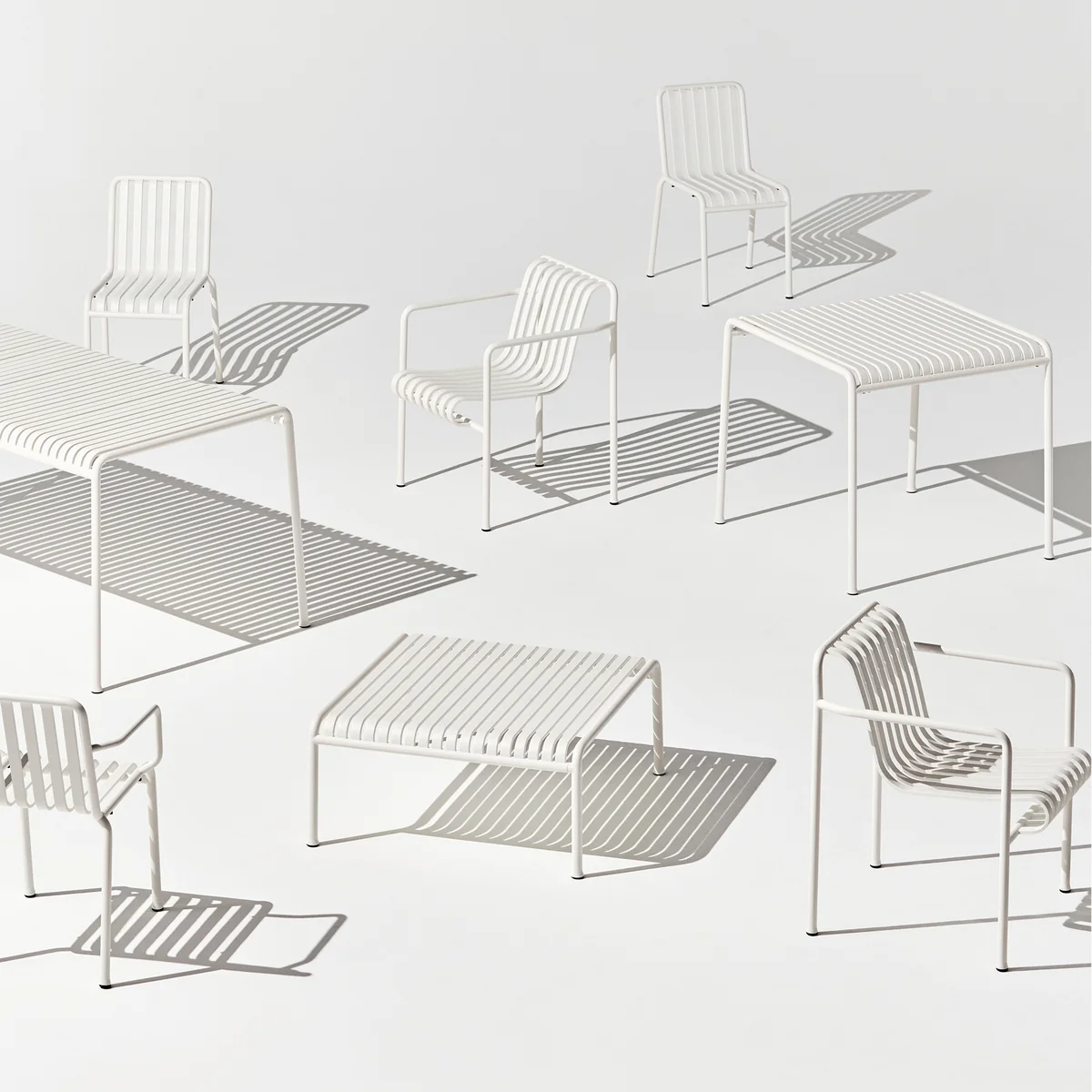 Naast de praktische component biedt het stutontwerp een buitengewoon effect in het zonlicht, omdat het meubilair een grote verscheidenheid aan grafische schaduwpatronen projecteert, waardoor het een echte blikvanger wordt in cafés en andere ruimtes.