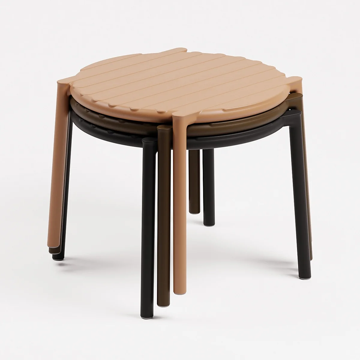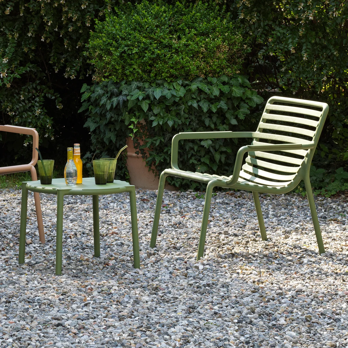 Doga Nardi De bijzettafel heeft een eigentijds, nieuw ontworpen staafmotief dat perfect past bij de buitenstoelen van . De kleine, eendelige tafel van glasversterkte kunststof heeft een rond tafelblad met een fris en licht ontwerp. De tafel is handig, stapelbaar en eenvoudig te reinigen. Het is volledig recyclebaar.