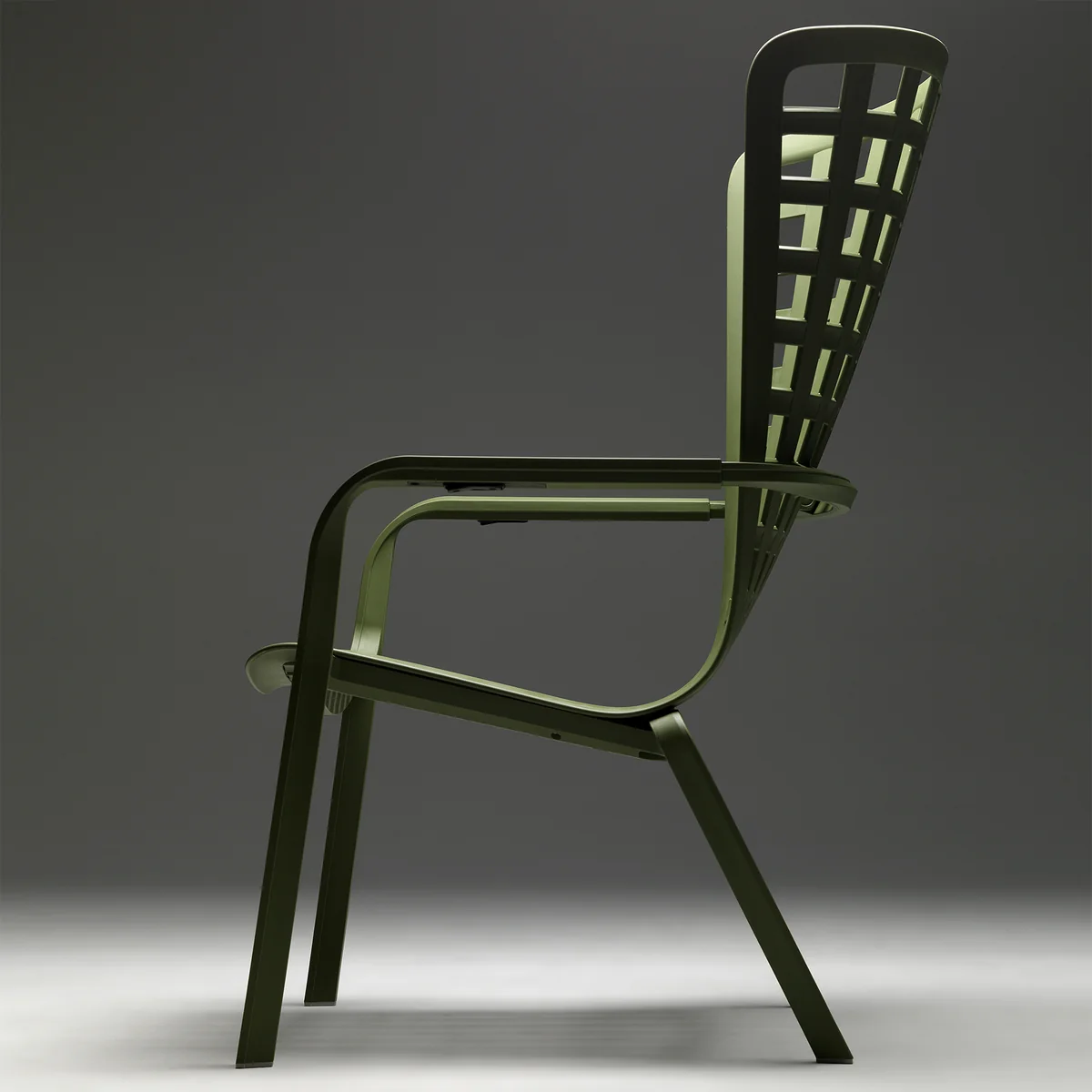 De Folio Outdoor fauteuil van Nardi is een fauteuil voor buiten gemaakt van geperforeerde glasvezelversterkte kunststof met een ruitpatroon en matte afwerking. De fauteuil presenteert zich met een comfortabele rugleuning die naadloos overgaat in de verlaagde, royale zitting. Een unieke en elegante structurele omarming die in twee standen verstelbaar is, waardoor hij perfect is voor lange uren op het terras of in de tuin.